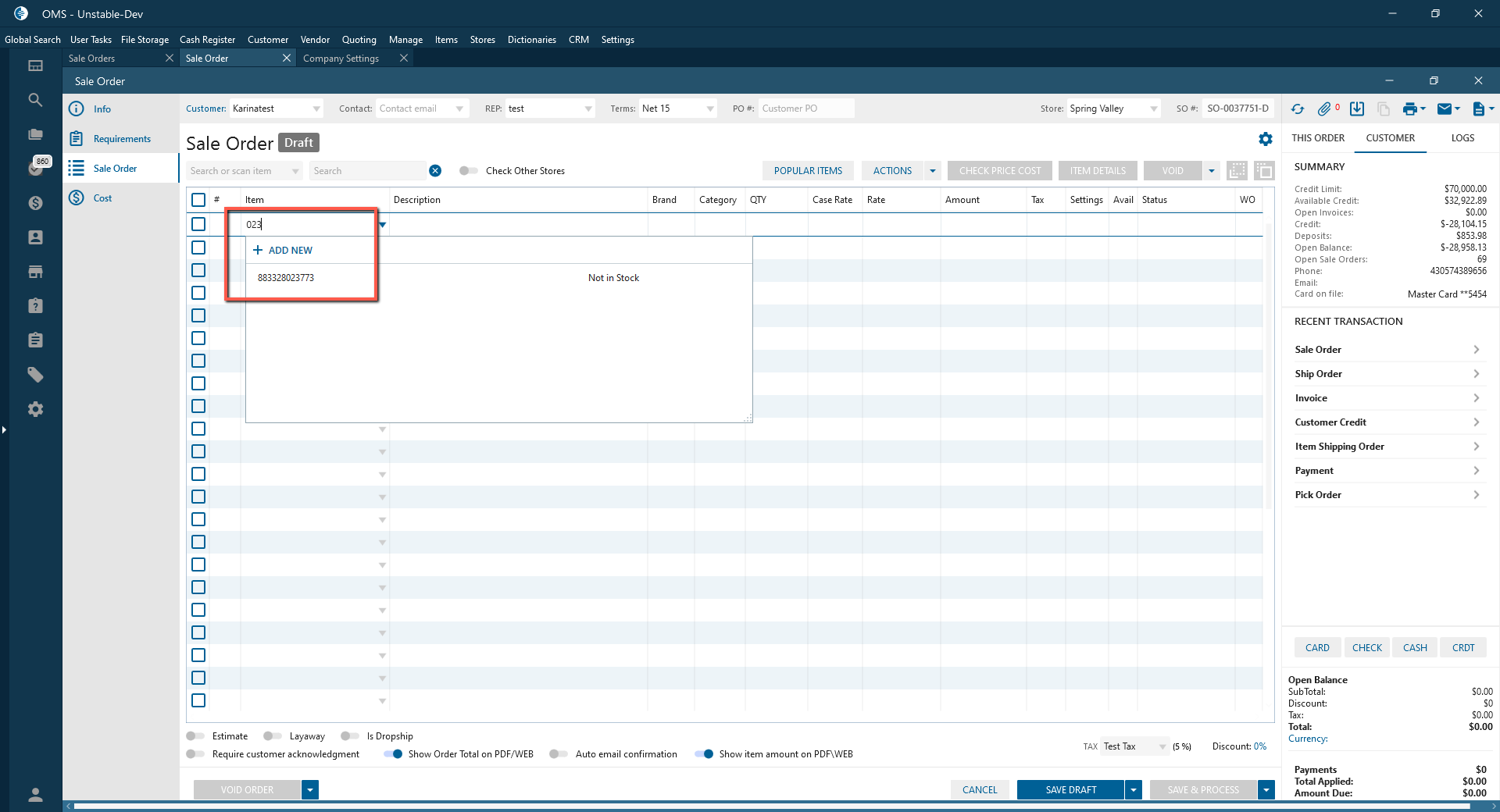 To the Base settings on Item tab in Company Settings was added “Search item in SO only by name” checkbox.