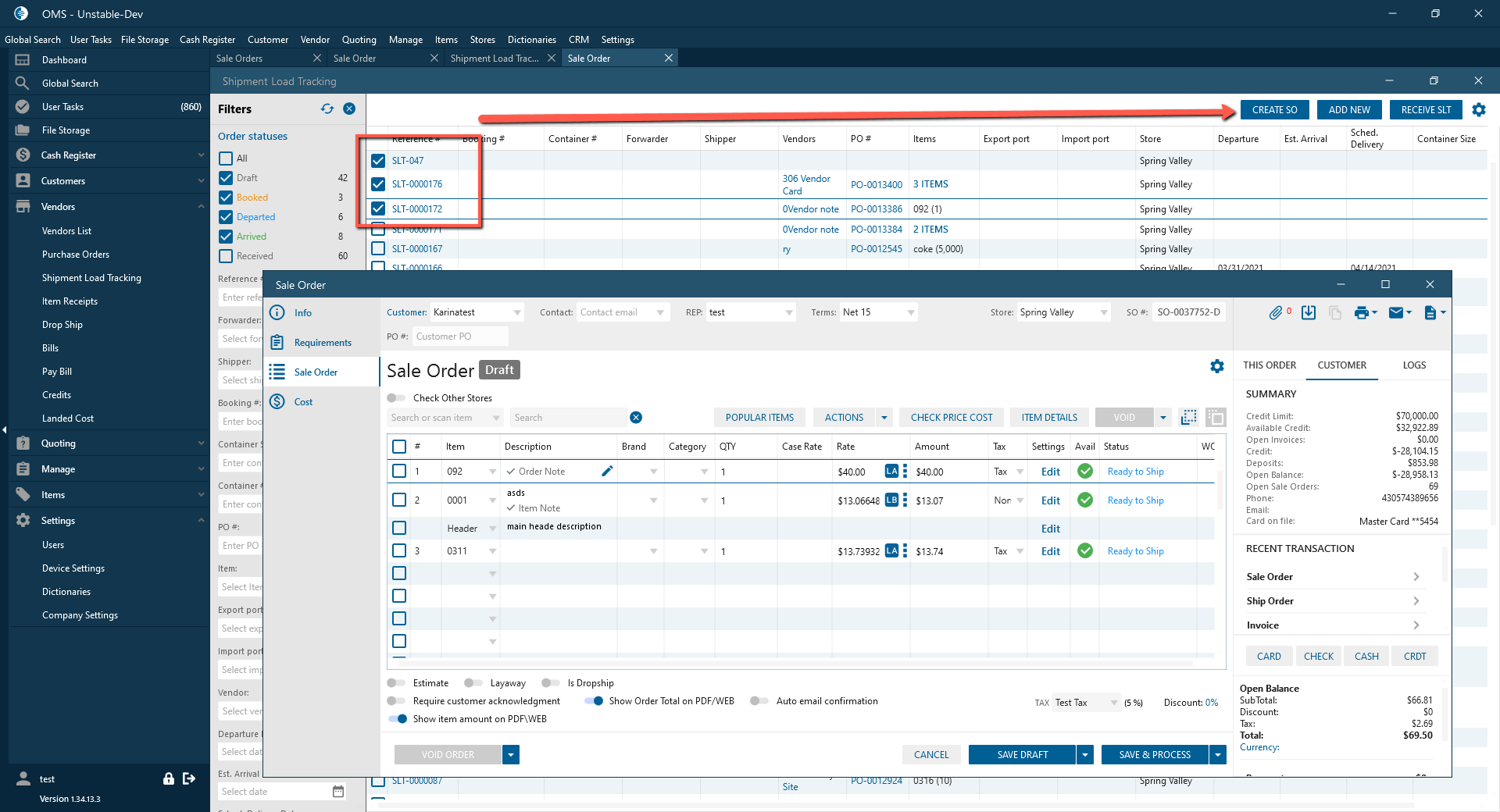 - After clicking on the button, the SO Draft is opened with items that were in the selected SLT.