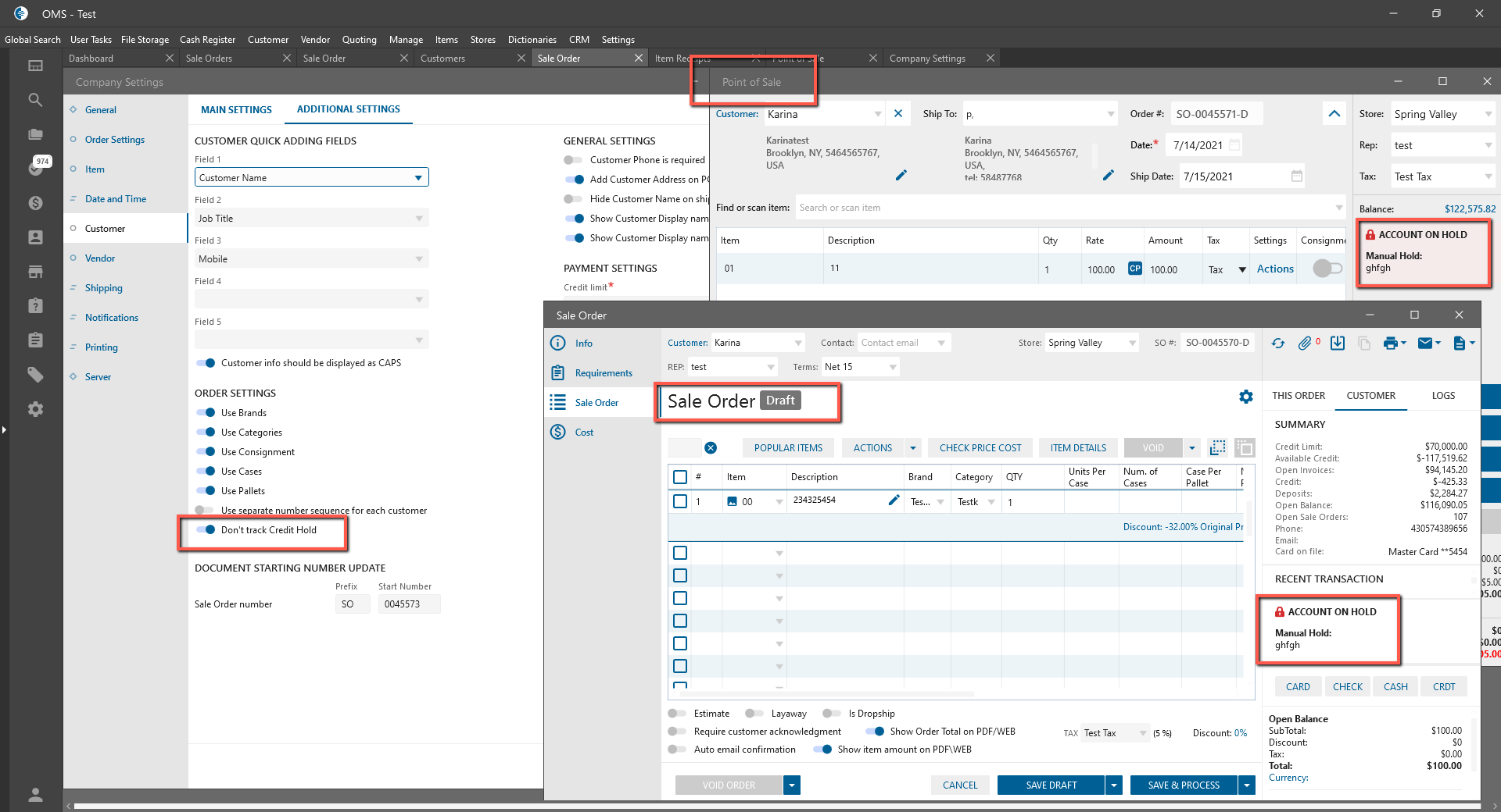 - POS/SO with Manual Hold Customer will not be processed without Admin Override/Full Payment.
