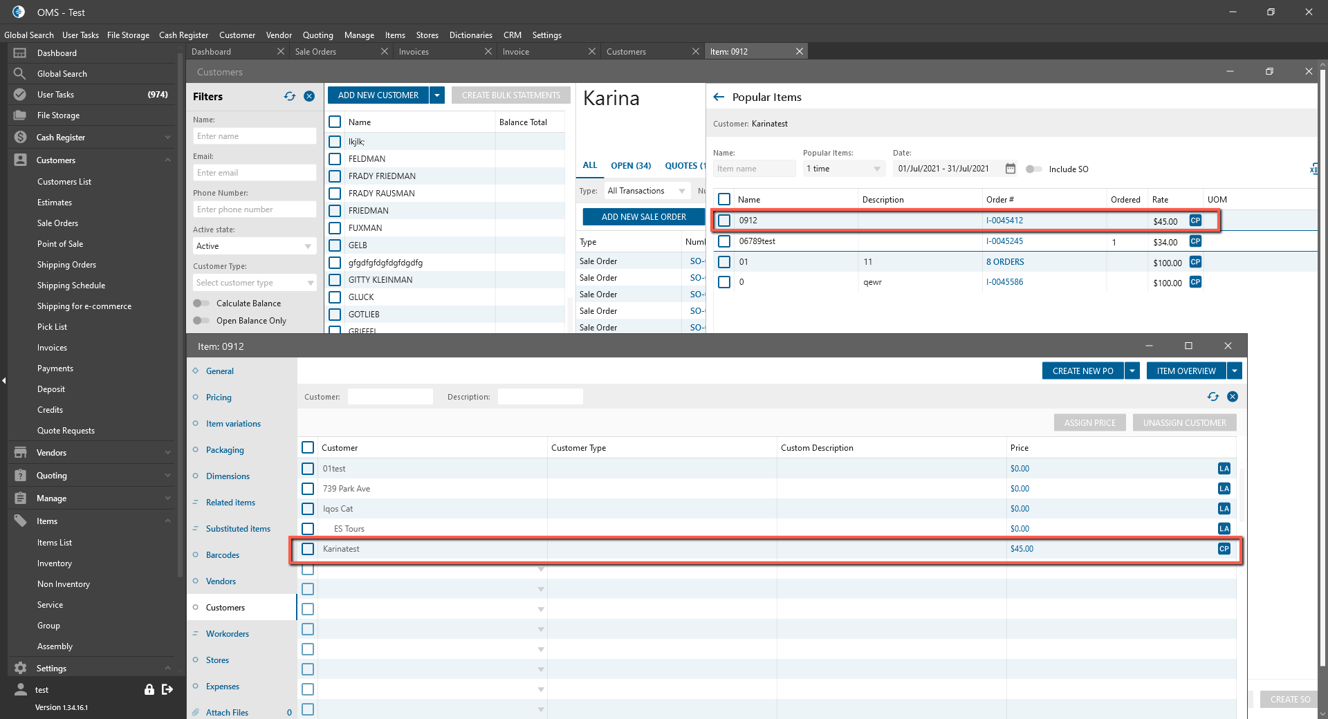Customer Prices are displayed from the Items tab on the Customer edit form.