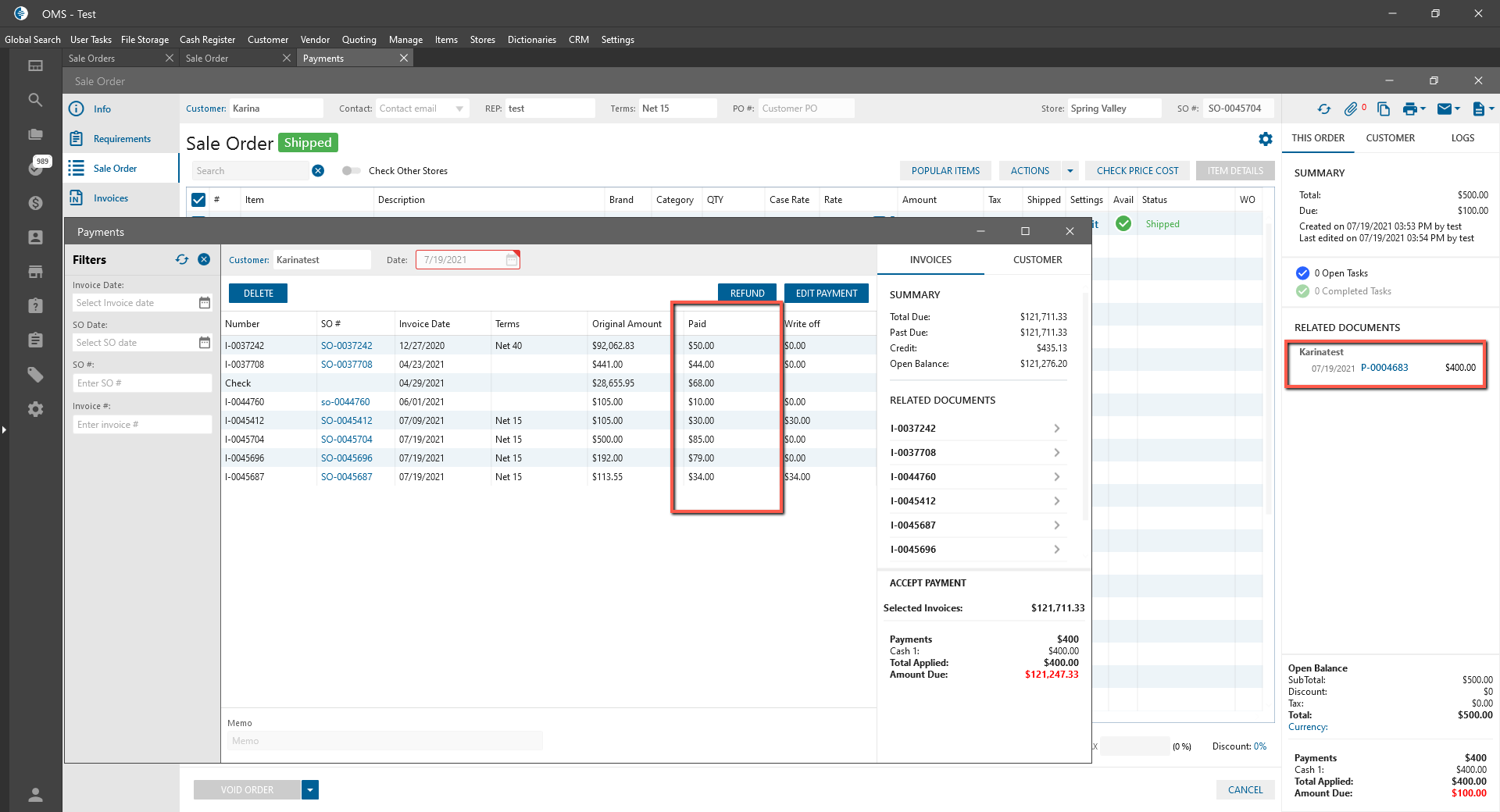 After Payment was added on SO -> it can be edited and distributed on the other opened Orders.