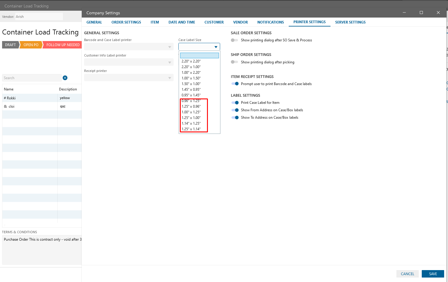 If the size is not selected in any field, the 2,2” x 2,2” size will be applied by default