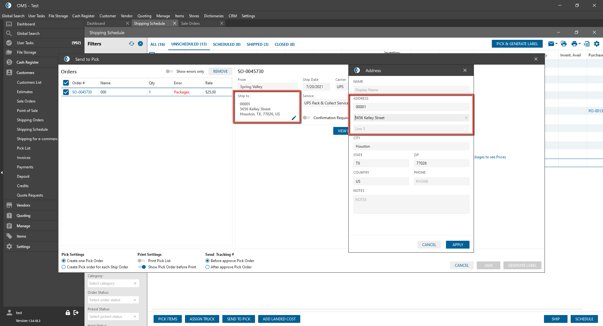 Then click Pick & Generate Label;