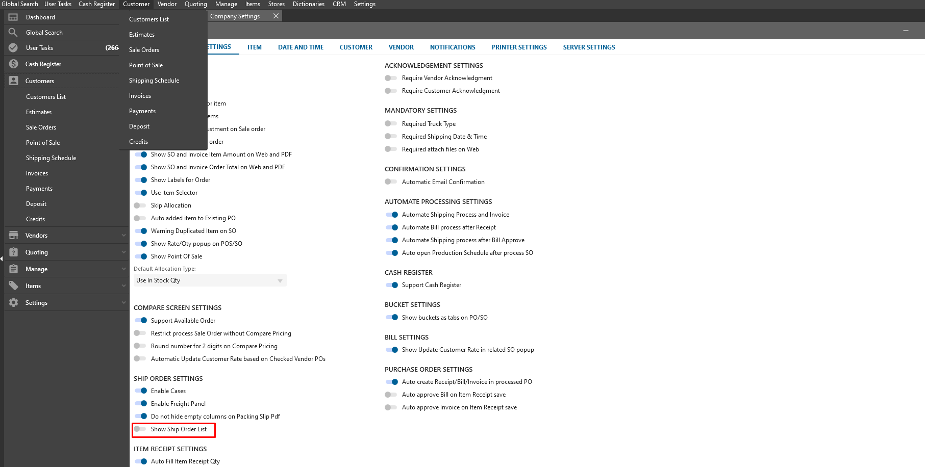If “Show Ship Order List” checkbox is not checked then the Ship order list form should be hidden from the left and top menu, only Shipping scheduled should be displayed