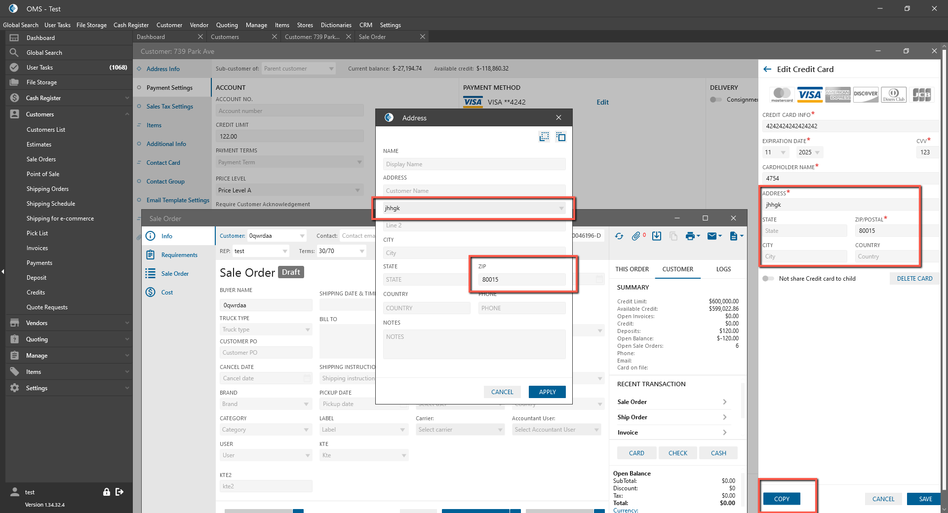 Ability to copy Customer Address from Credit Card to Billing Address on SO