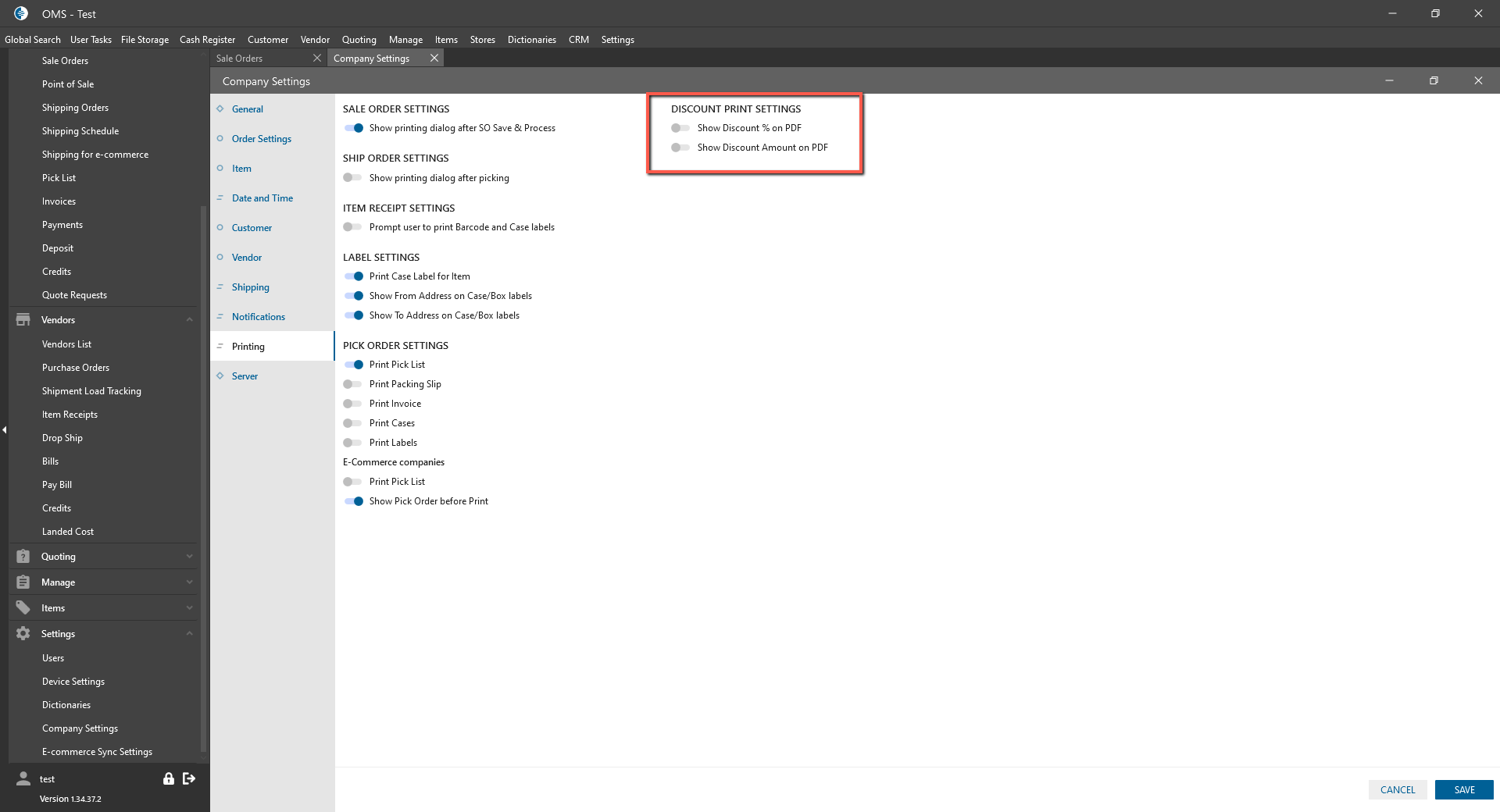 - Discount Print settings (applied to Sale Order / Sale Order Receipt / Invoice):