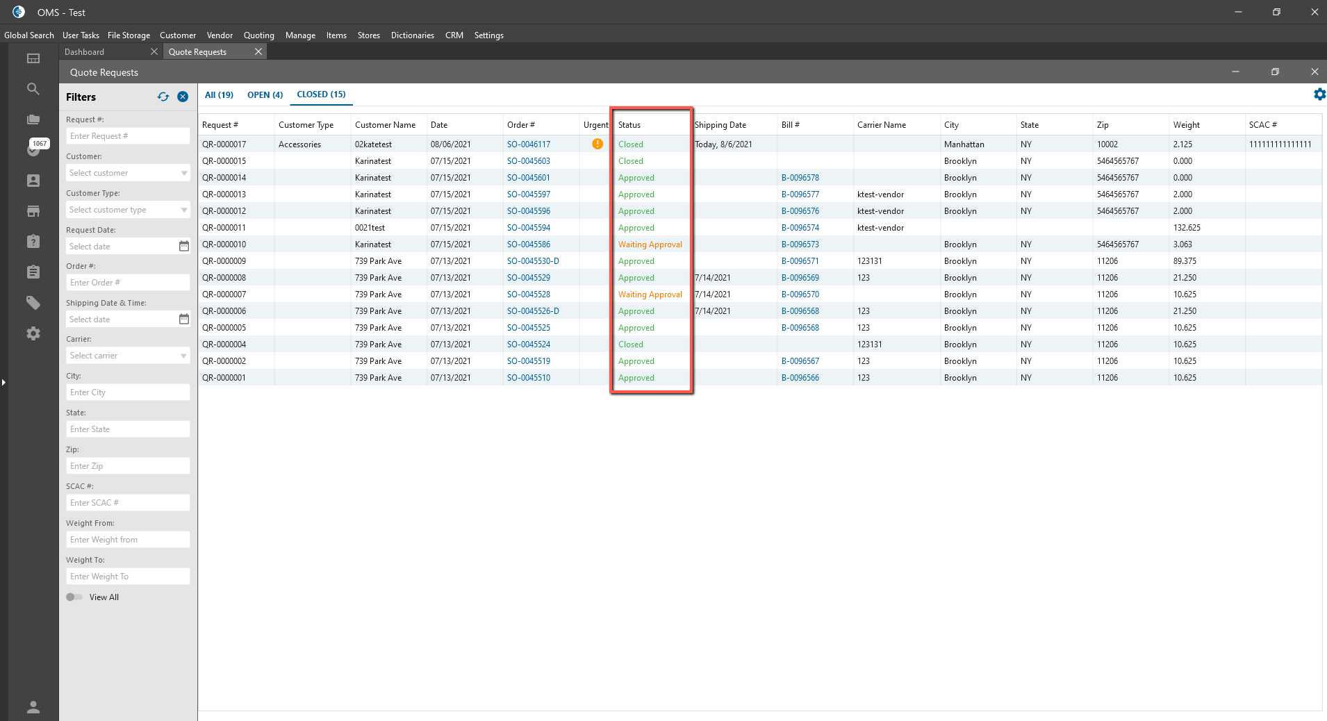 - All tab display Quote Request in all statuses;