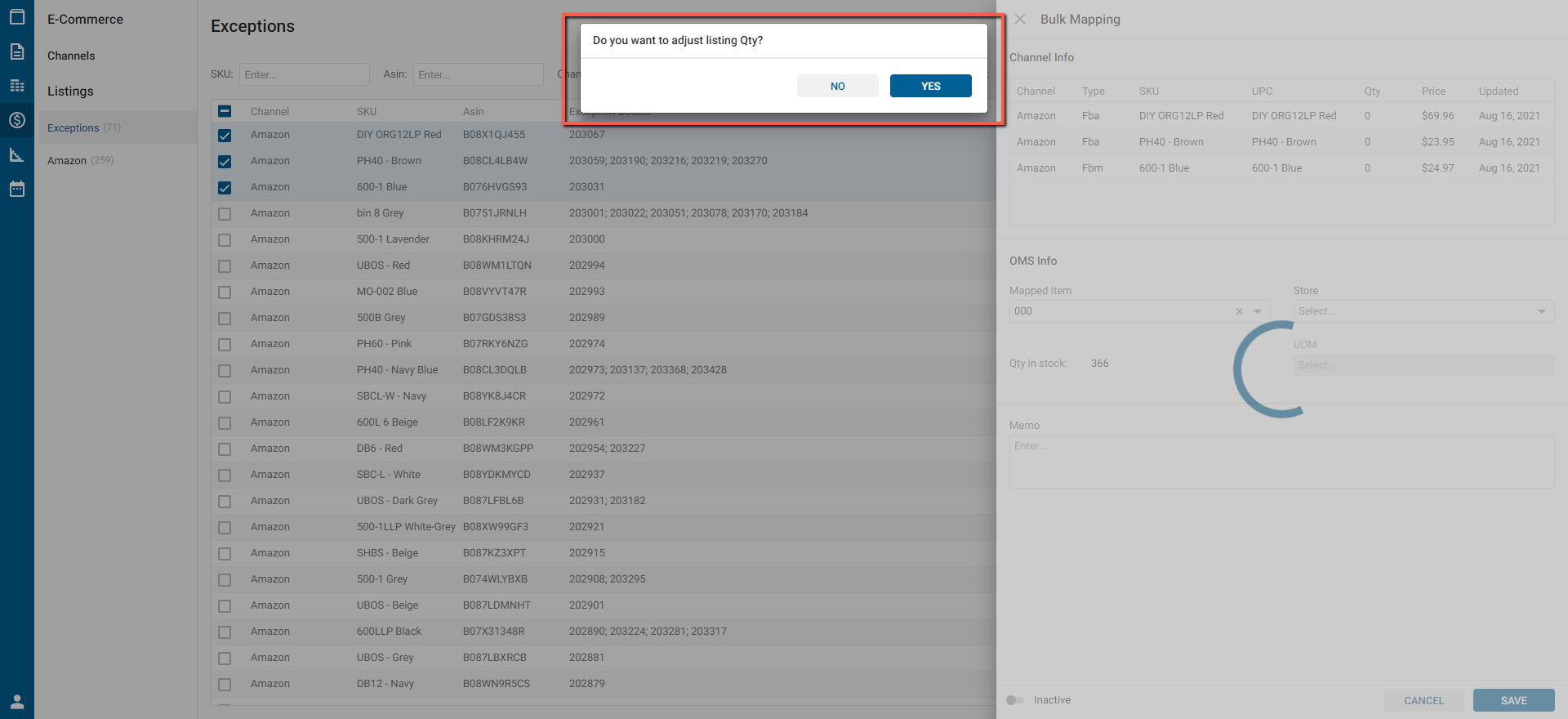 - Text: “Do you want to adjust listing Qty?”;