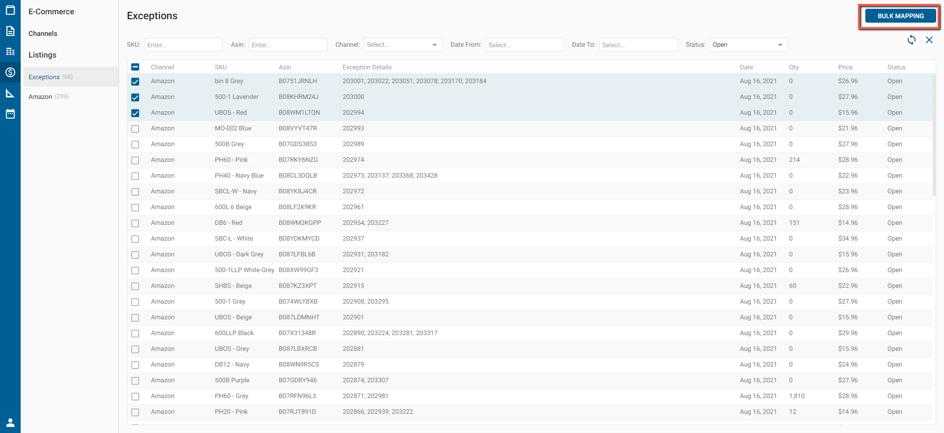 - Bulk Mapping button: