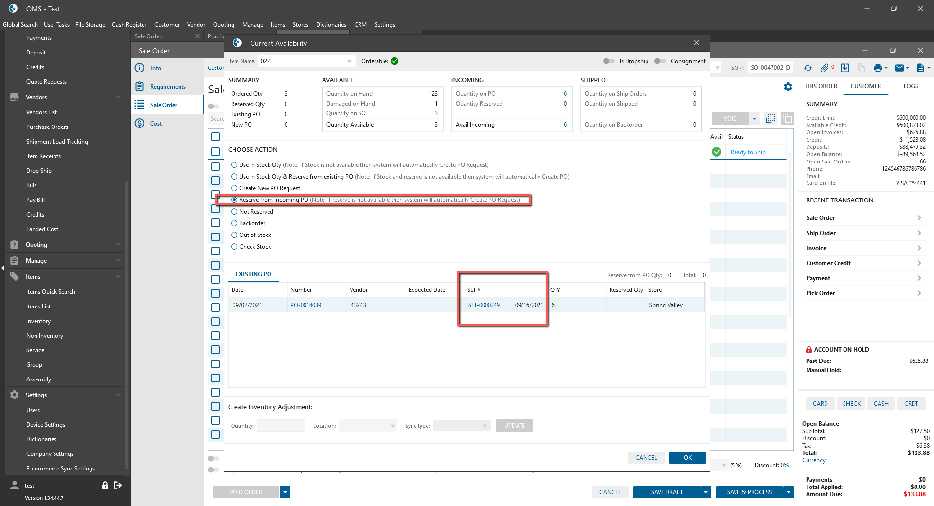 - Added on the Current Availability -> Reserve from incoming PO action -> Existing PO datagrid column: