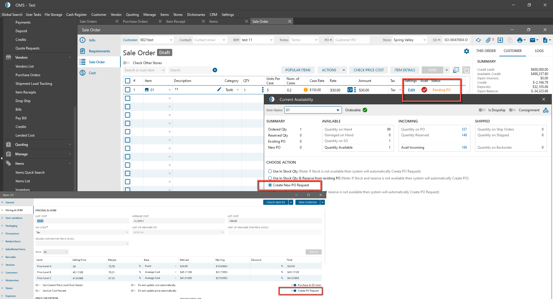 - if checked -> on Sale Order selected item by default in status Create PO Request even when the item is in Stock.