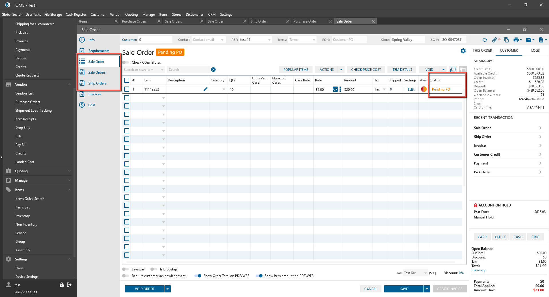 - Refresh Sale Order -> Qty is the same as in Pick Order -> Item status Pending PO;