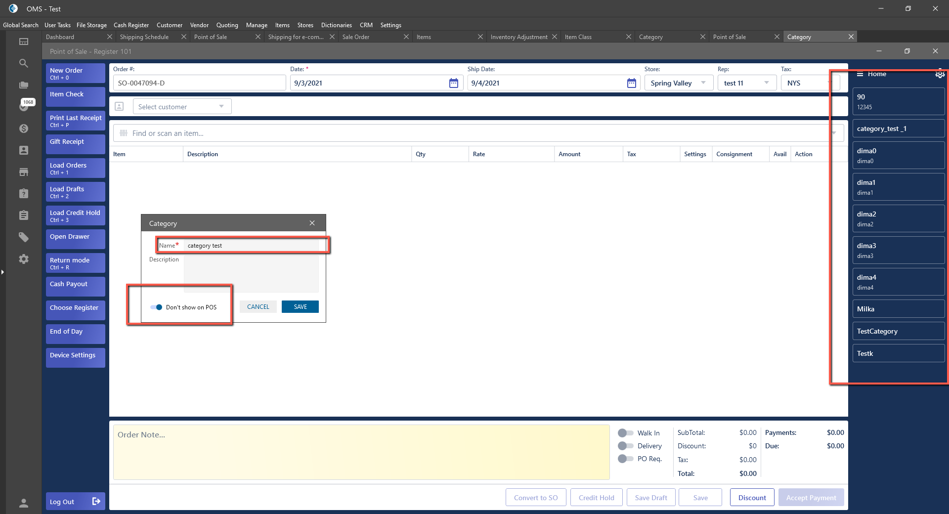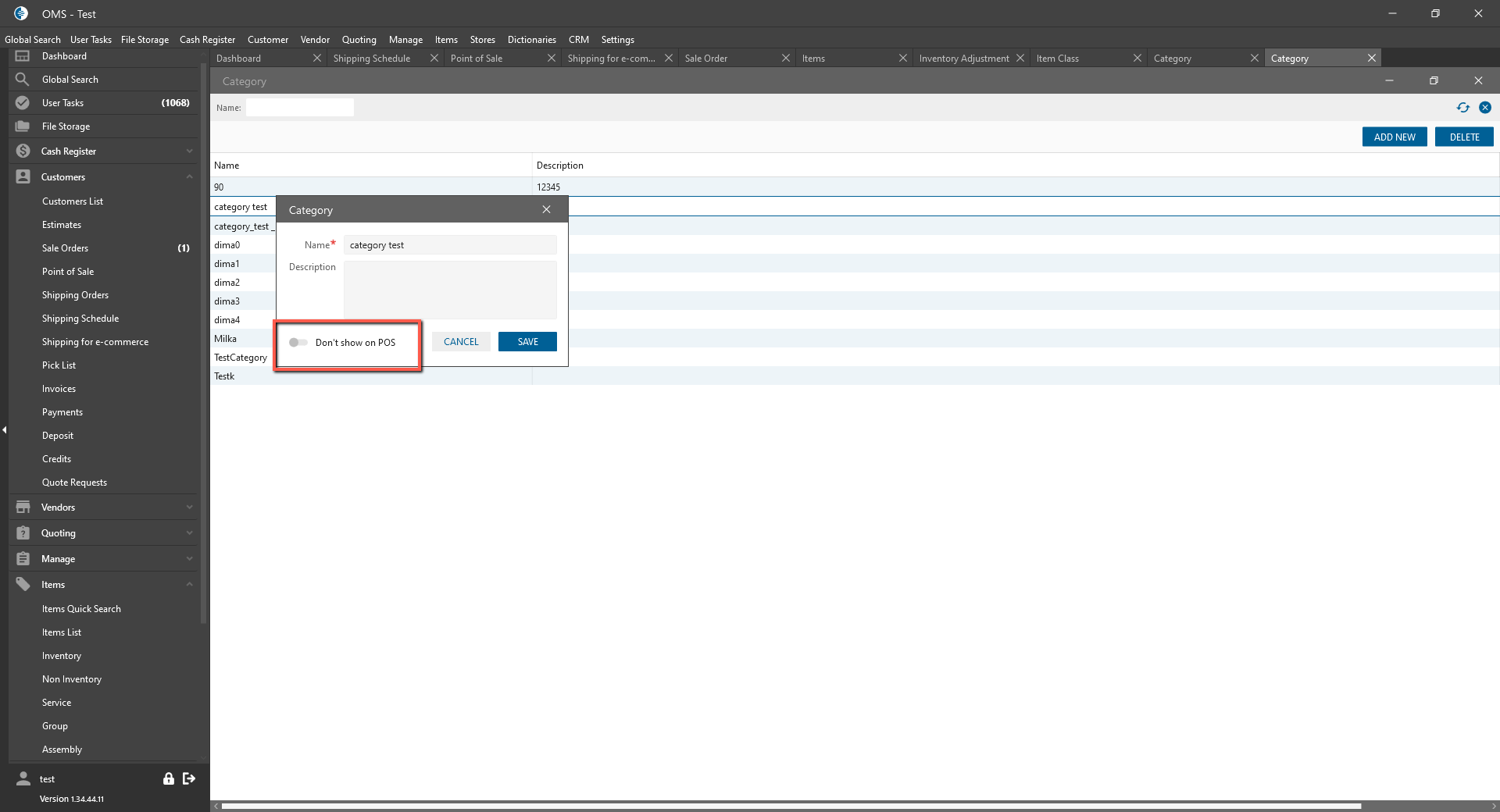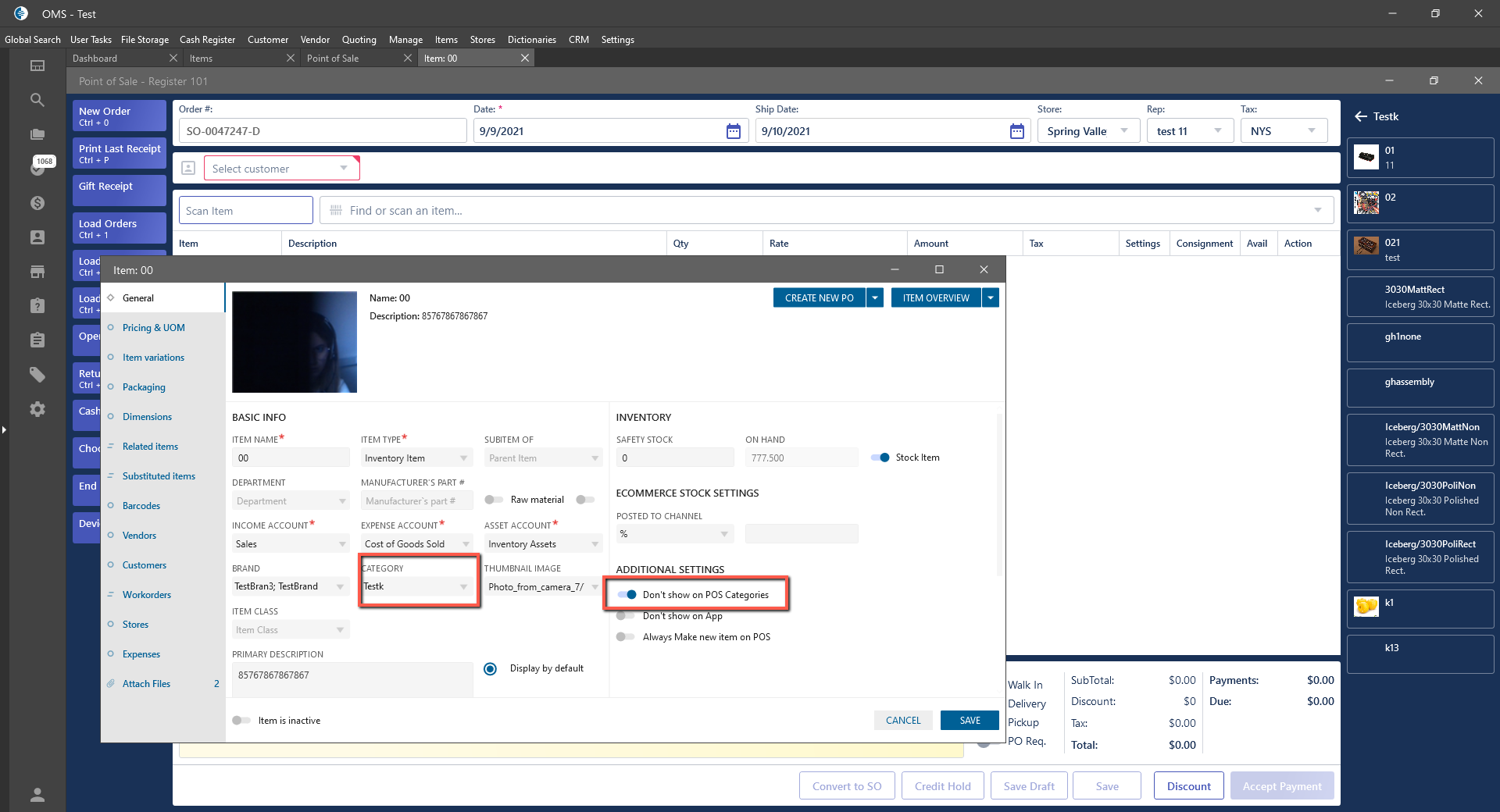 - added on Item edit form Don’t show on POS Categories checkbox: