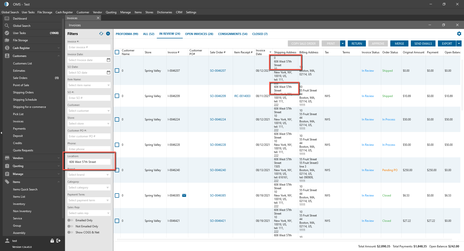 - Users can search Orders by all location fields from the Addresses pop-up. Can be entered: