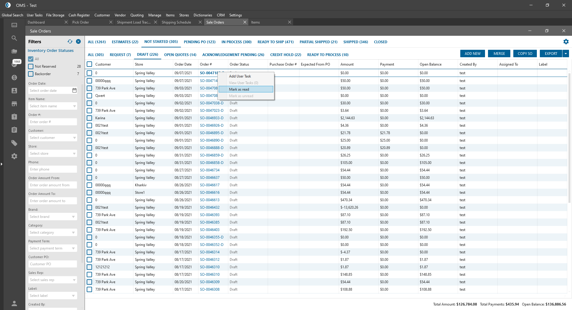 - The user created Draft Sale Order from app -> in OMS system shows unread Sale Order as bold: