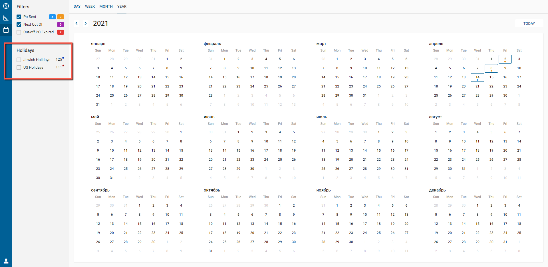 - if checked -> display all US Holidays on the Calendar;