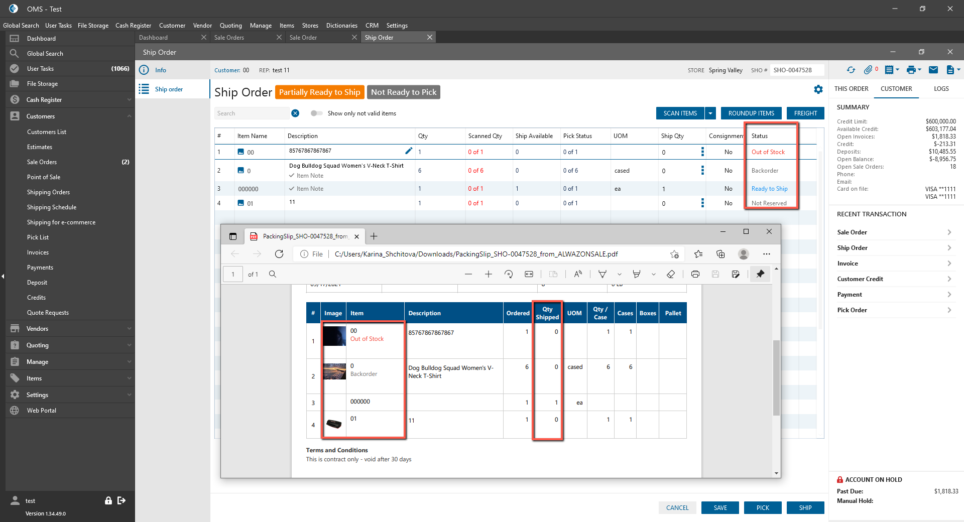 - If in Sale Order items in statuses Out of Stock/Backorder: