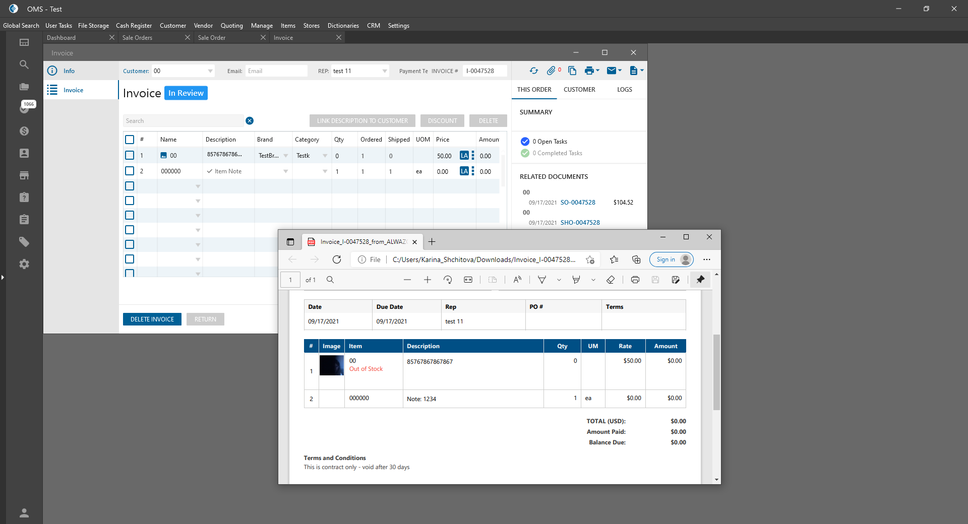 - the amounts for the items are the same on the Invoice and Invoice PDF;