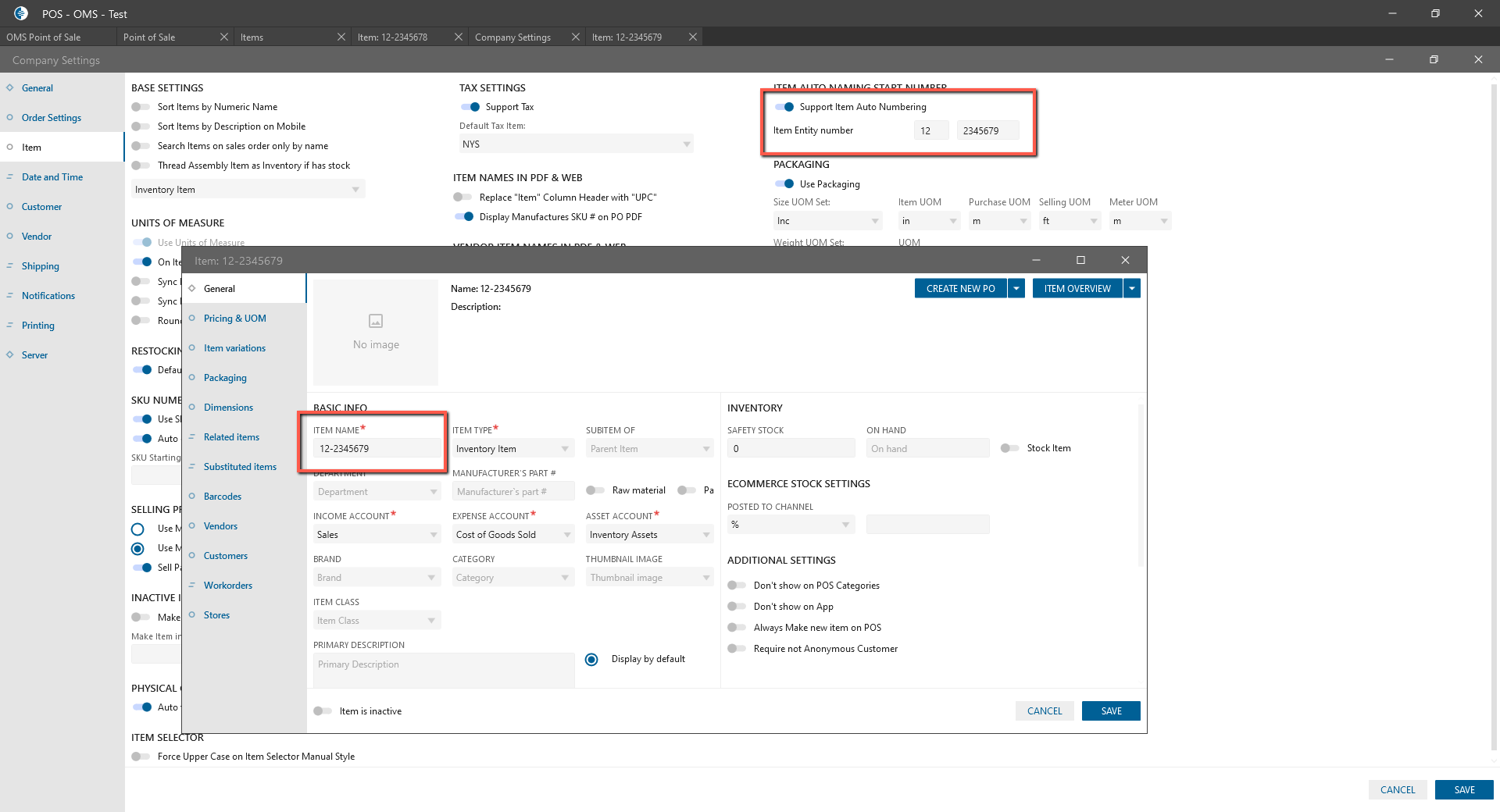 - after click on Add new item button -> opens item edit form with item number based on Company Settings;