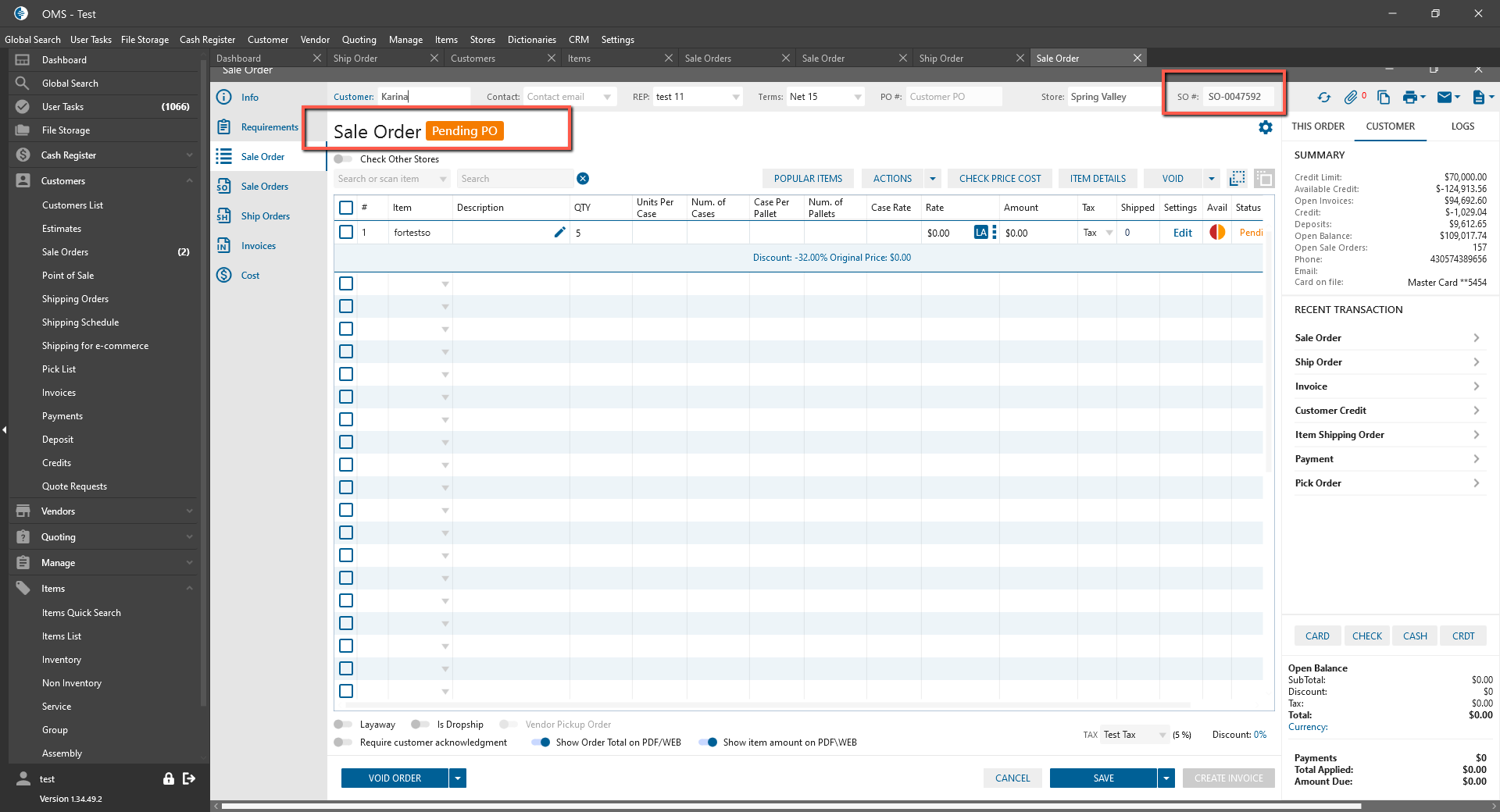 - Create PO -> Add created item -> Set QTY = 10 -> Process PO;