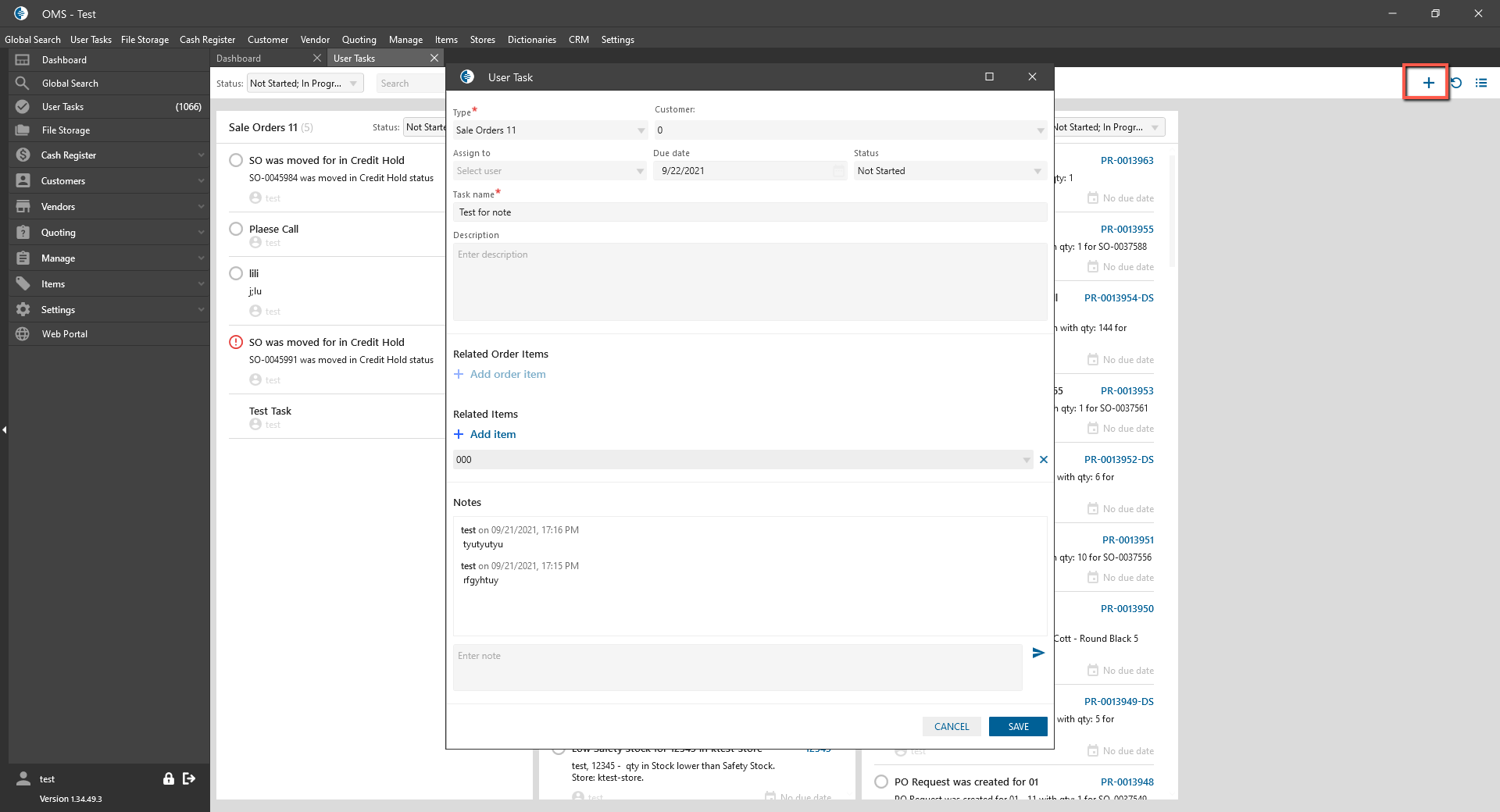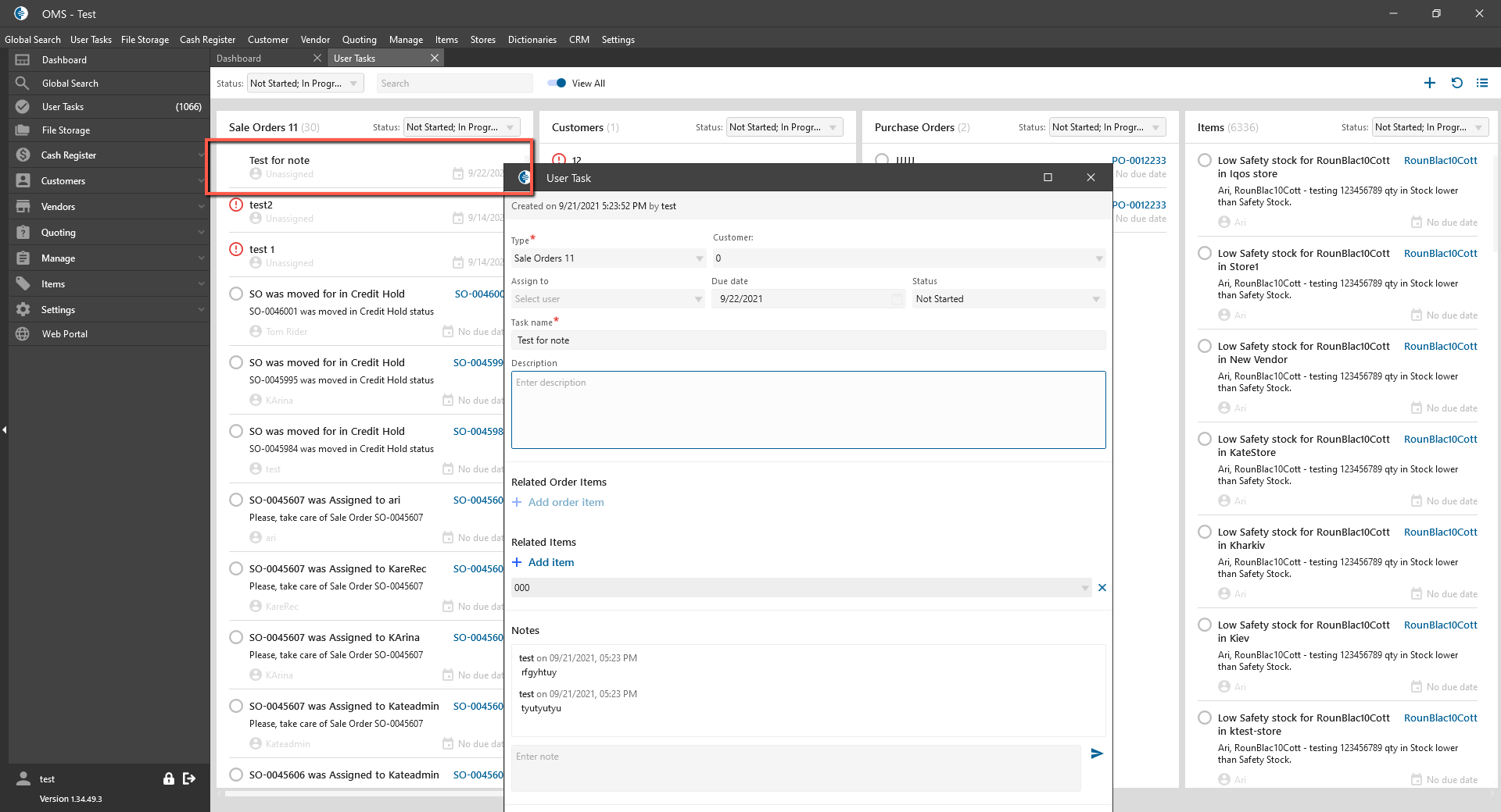 - After note was added -> it displayed in the list with the user who added note, date, and time of creation;