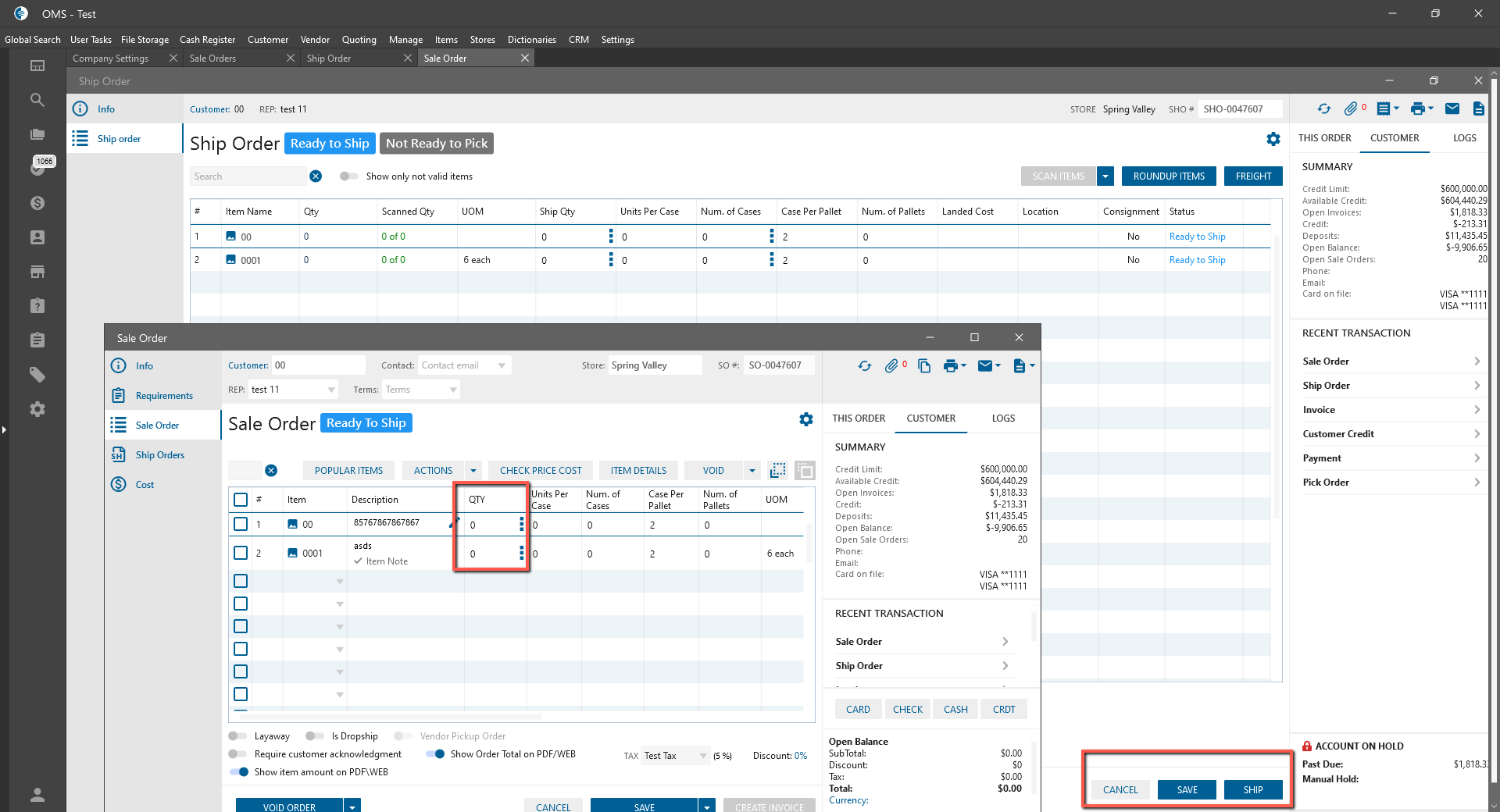 added ability to enter item Qty = 0: