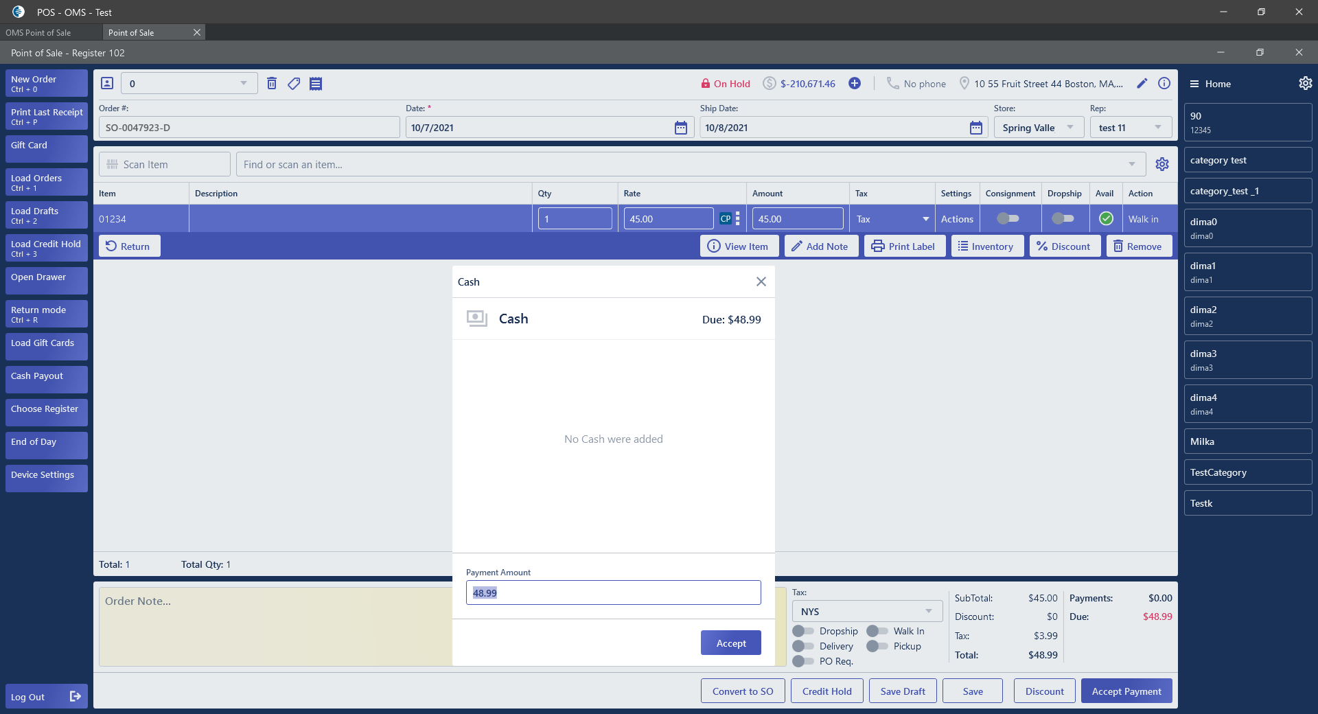 - Open Cash pop-up with Amount;