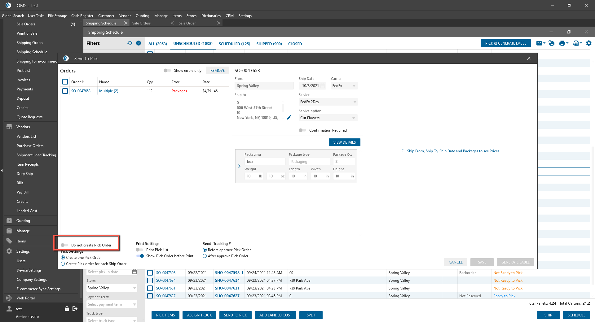 - on Shipping Schedule Pick & Generate label form this checkbox checked automatically.