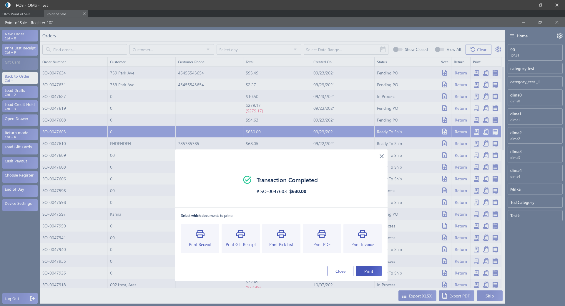 - If Ready to ship Order selected -> after click on Ship button: