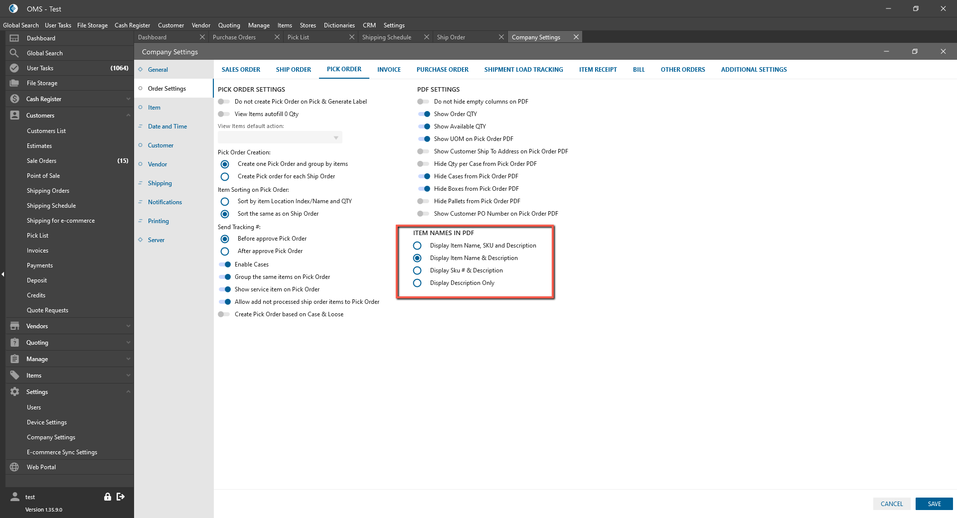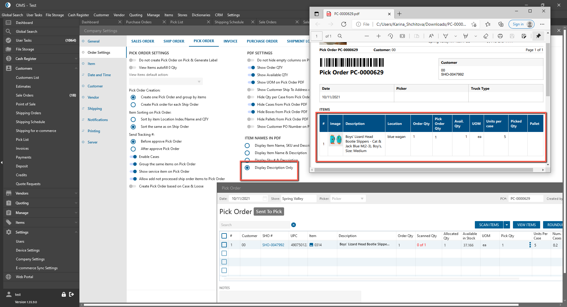 - display in Pick Order PDF corresponding fields;
