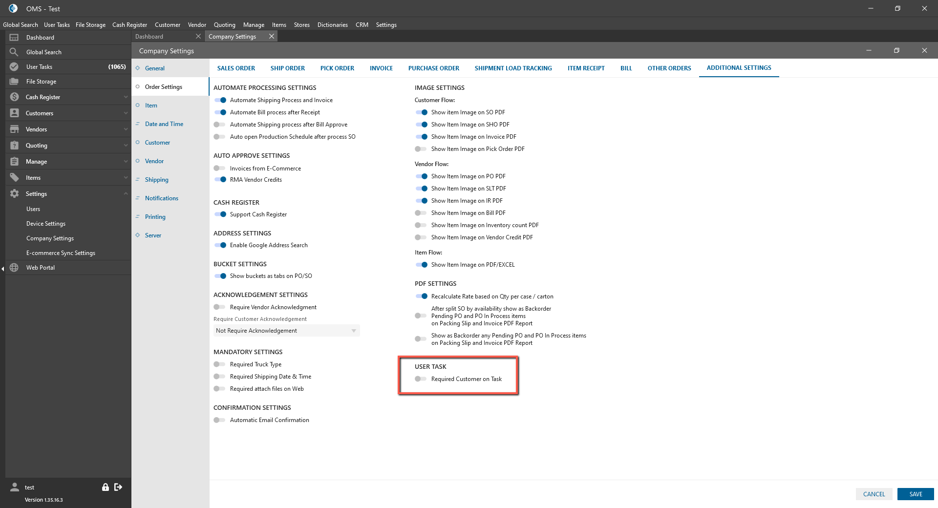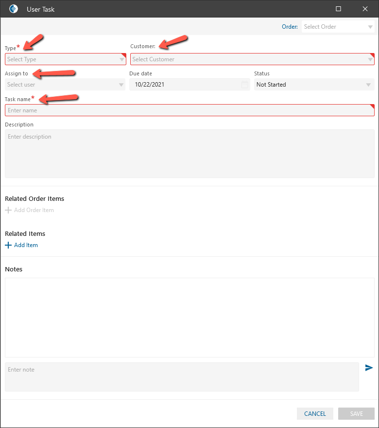 - “Required Customer on Task” checkbox: