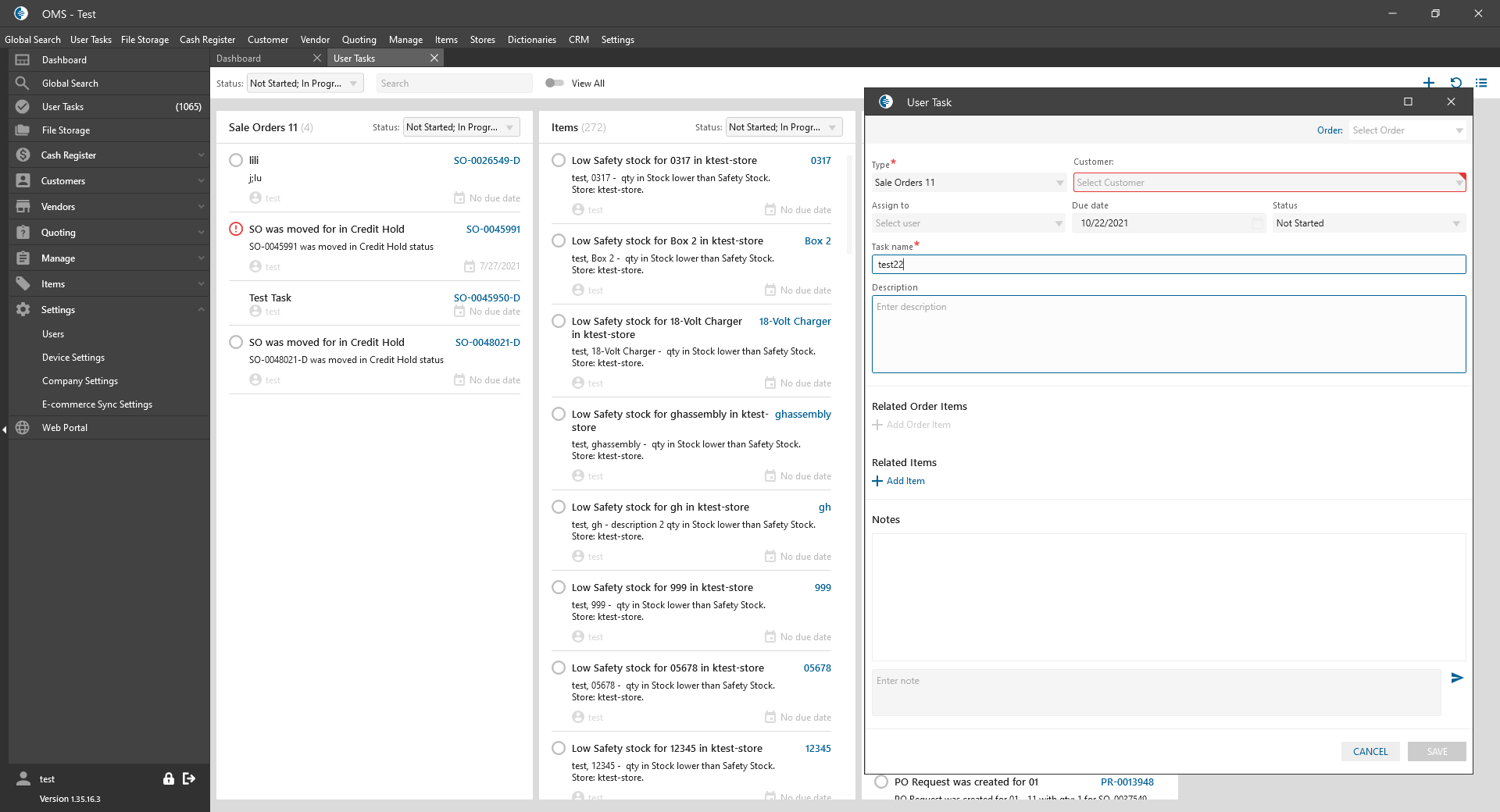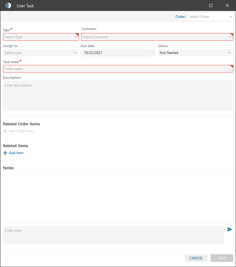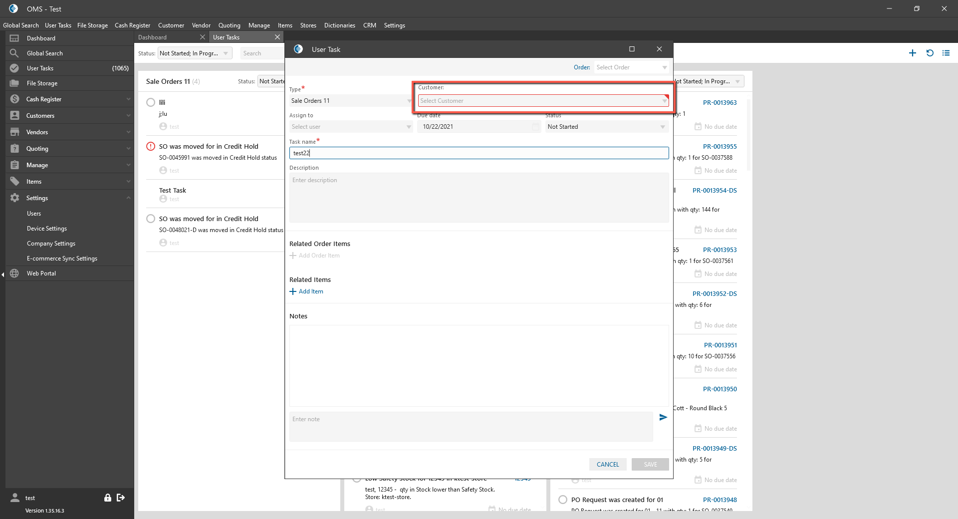 - if the checkbox is checked -> Customer dropdown on the New Task panel is required.