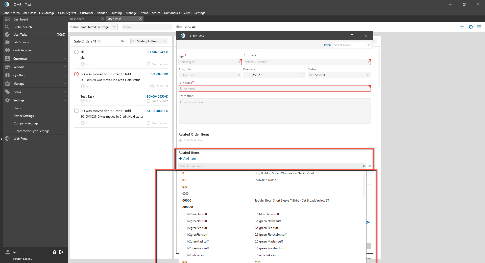 - if in Company Settings checked the appropriate checkbox -> Customer dropdown;