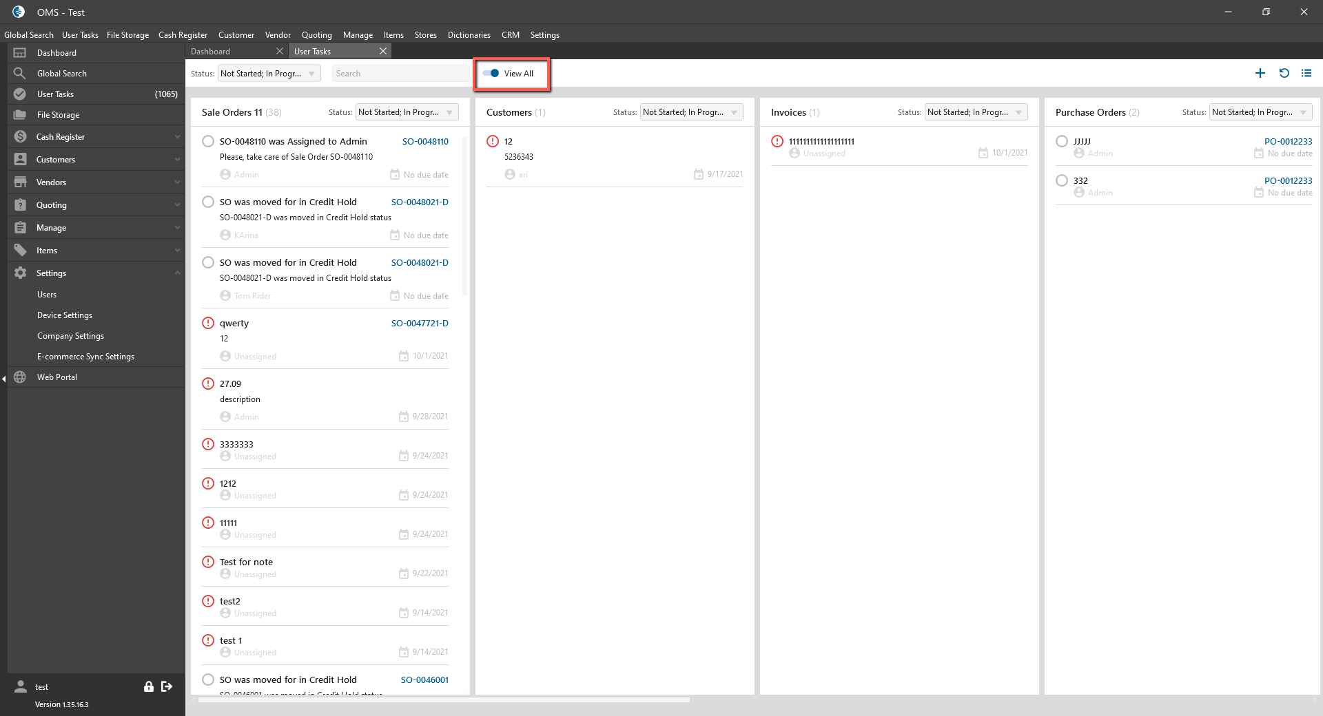 - all Tasks in the System are displayed;