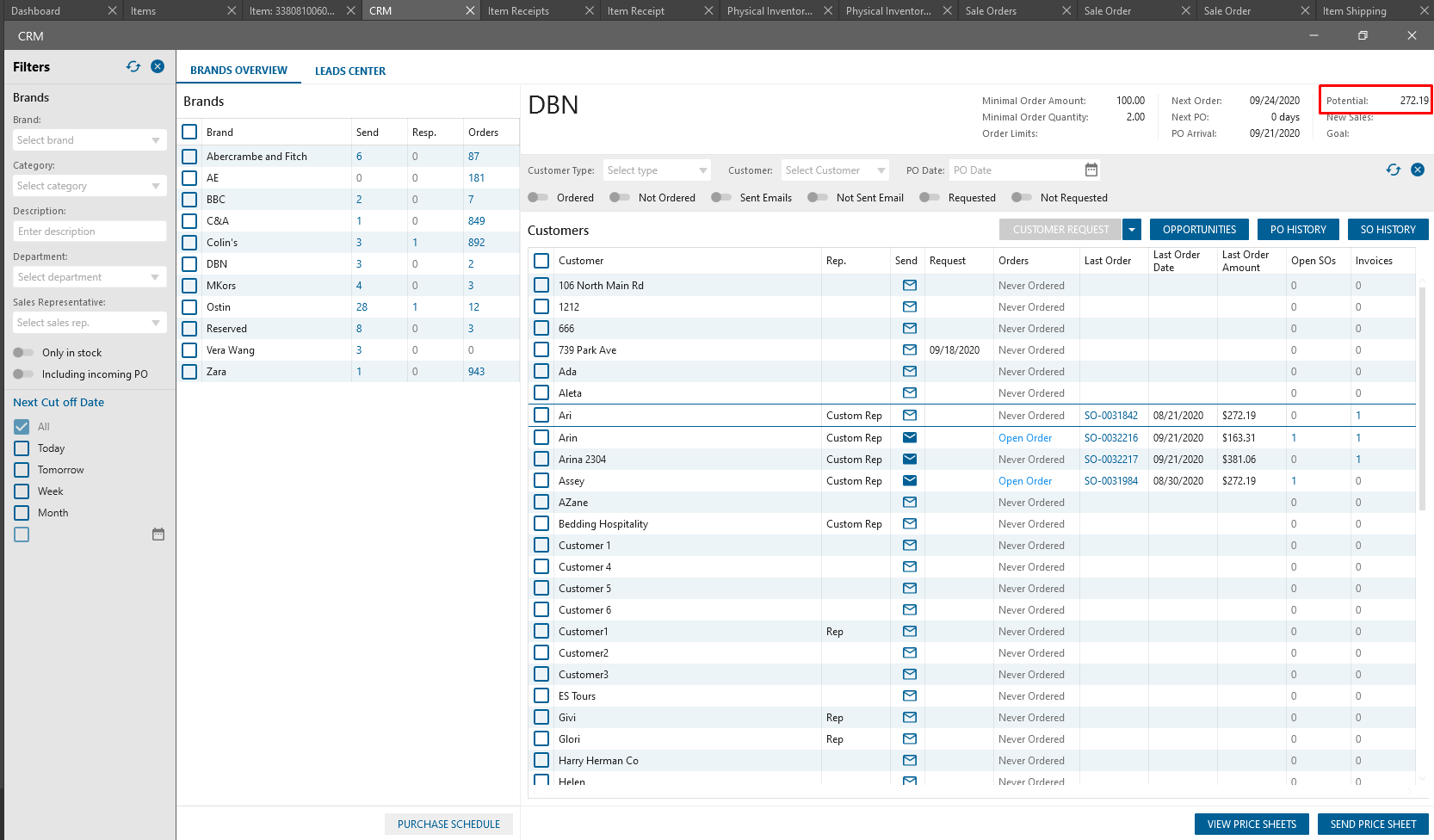 - Potential Sales calculation was changed and “Potential” value on the header will be calculated as: