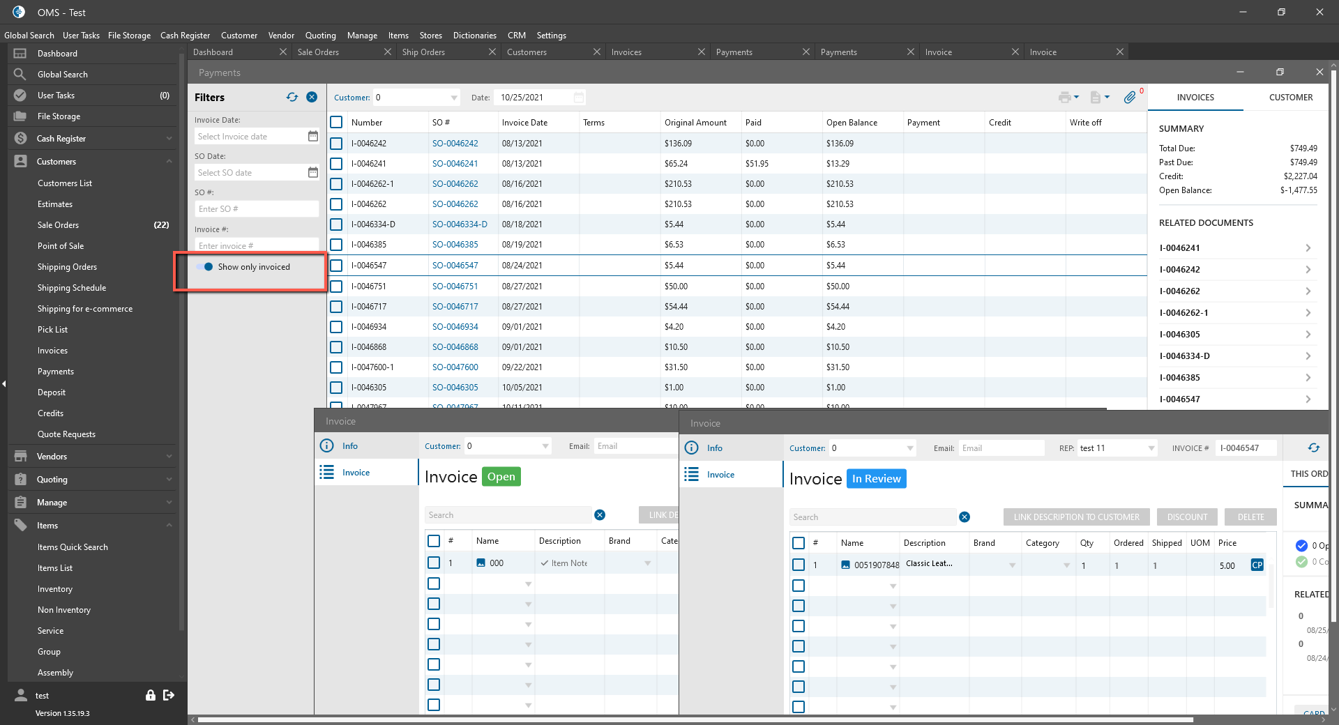 - on the List form are displayed Invoices With Open Balance > 0 and in Statuses: