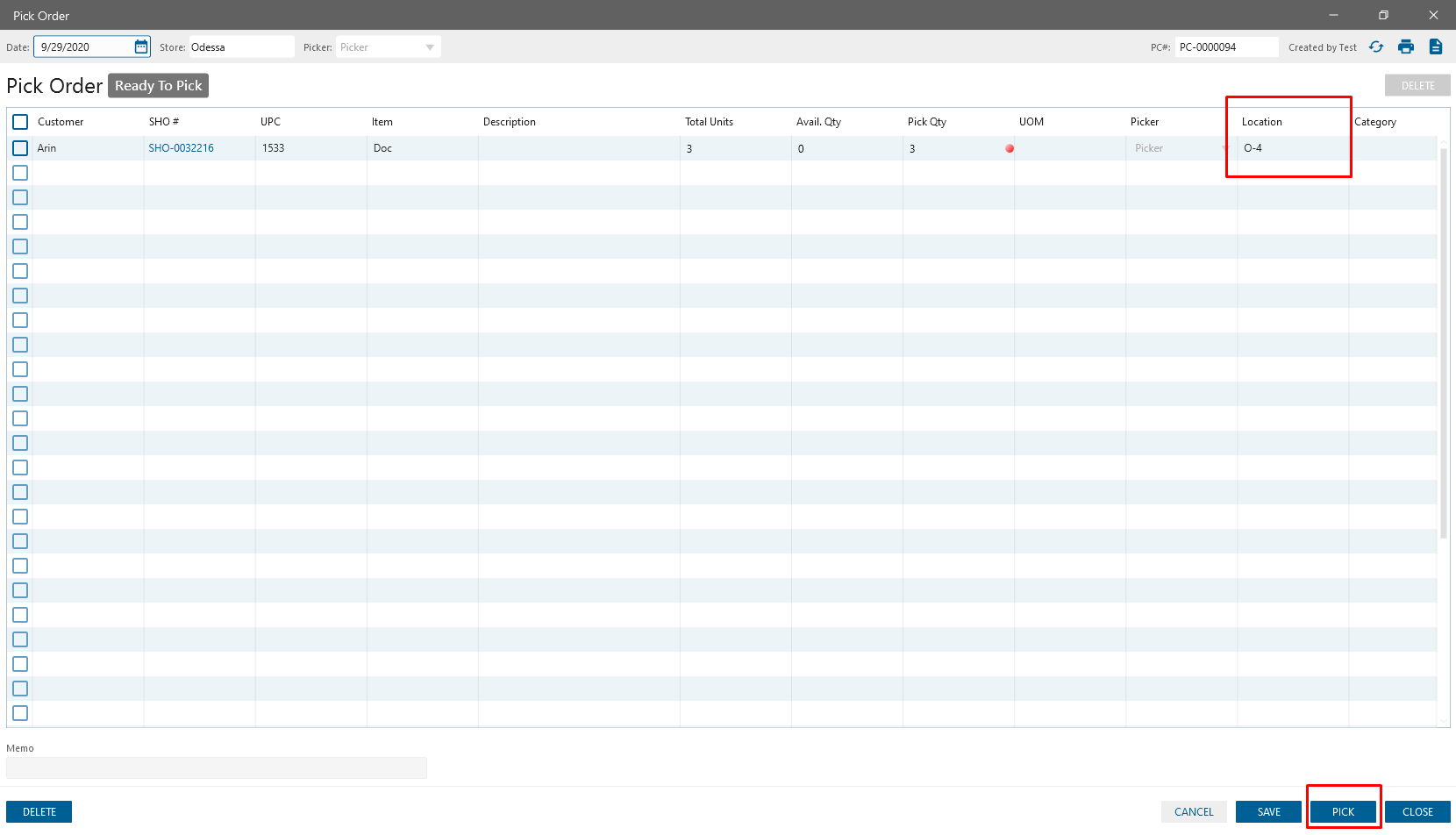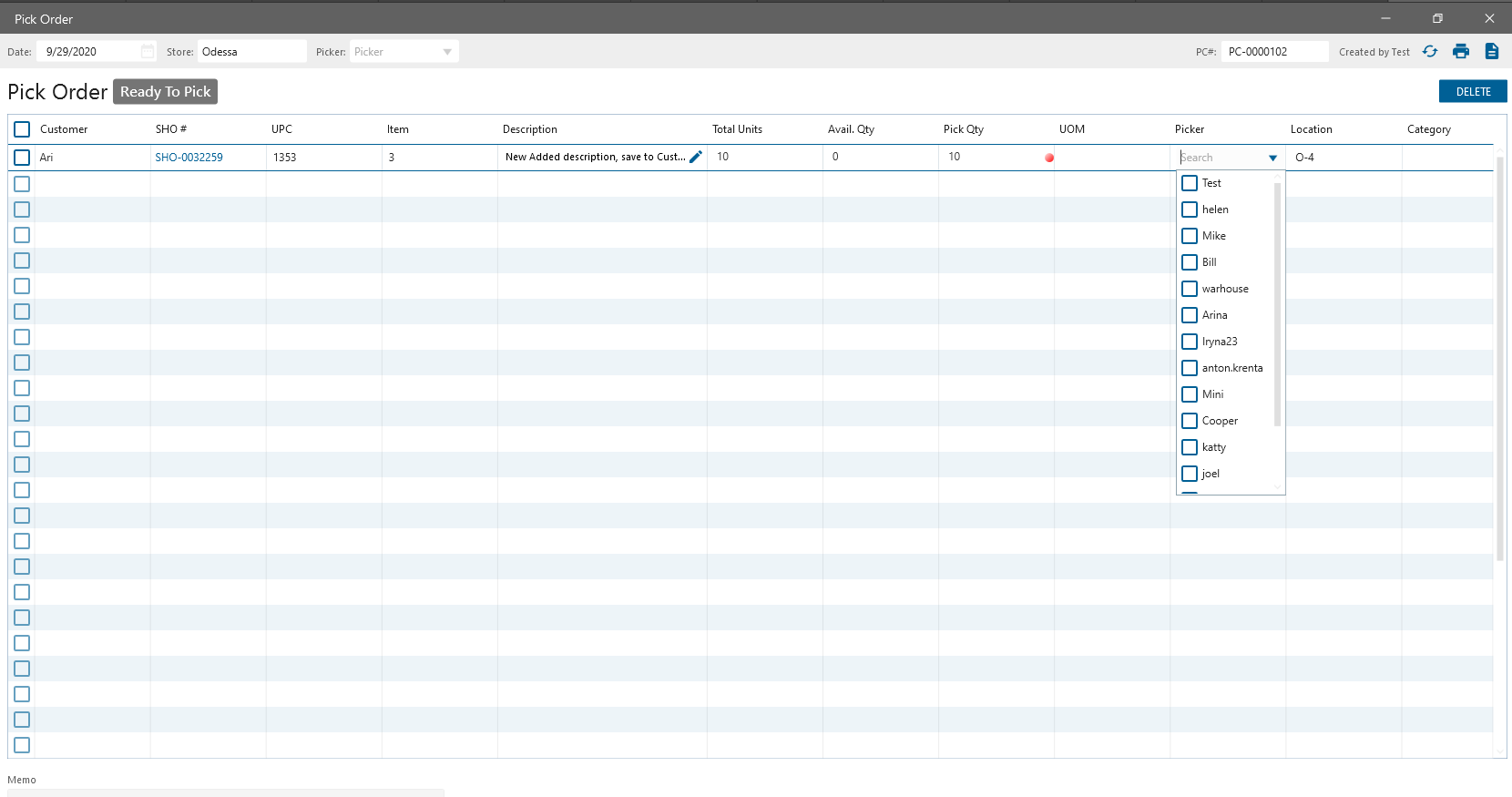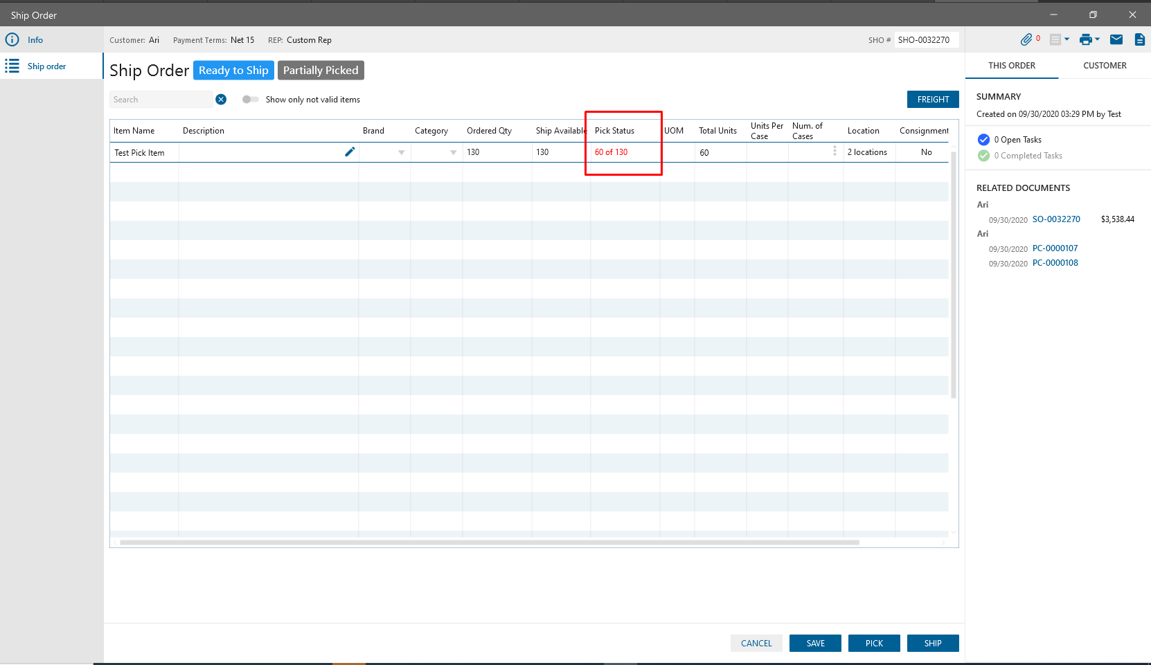 - Pick status column. Added Pick Qty in format: N of M where N – sum (Pick qty from related to item Pick orders) in status Pick/Close, M – Ordered Qty