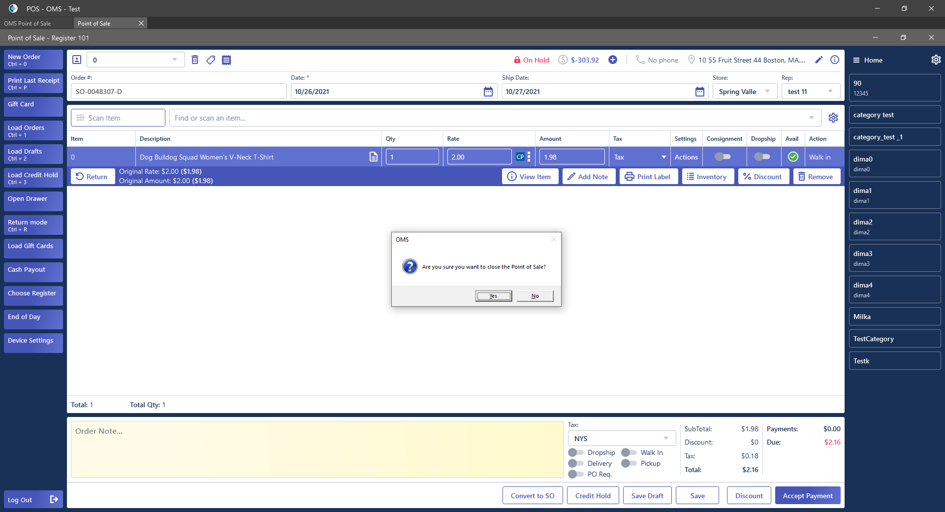 - Text: “Are you sure you want to close the Point of Sale?”;