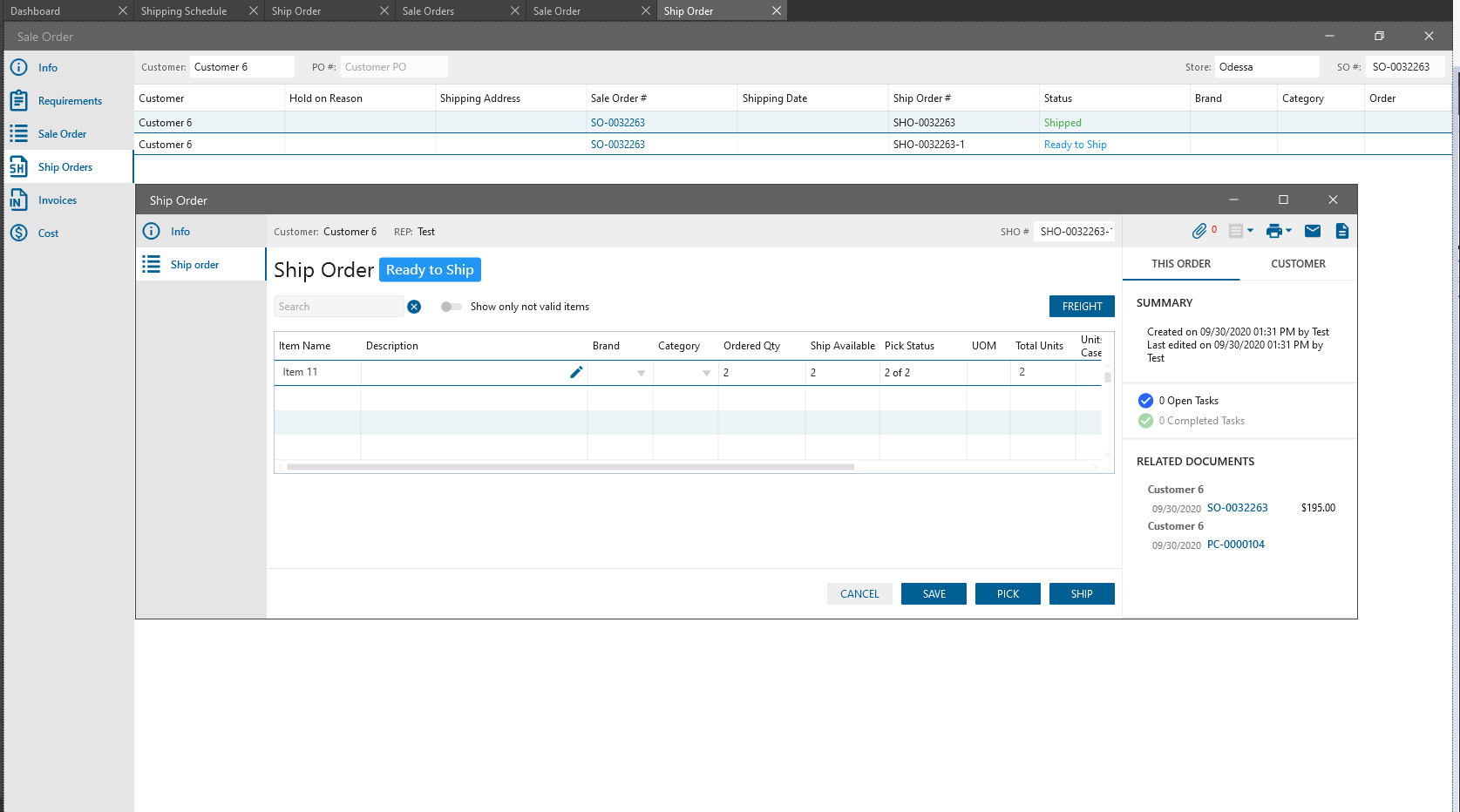 - Reopen SHO, in Total Units enter Qty 5 → Click Ship button
