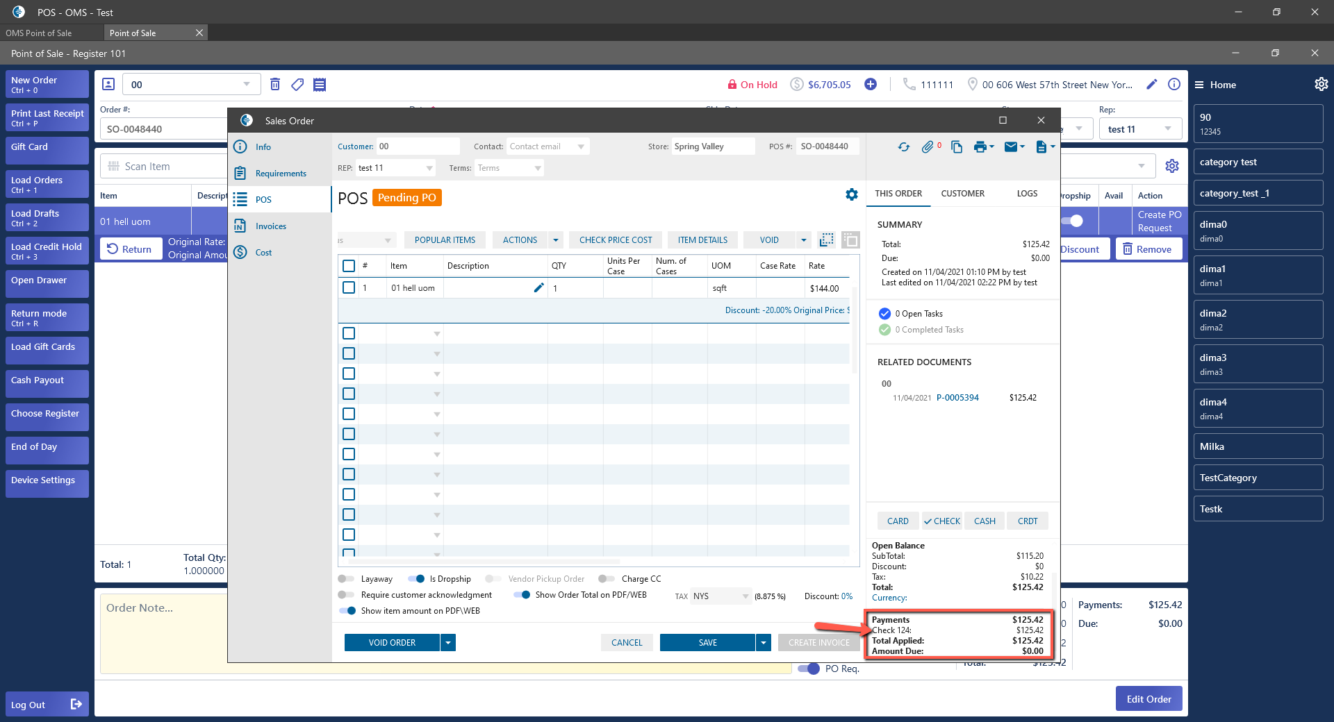 In Accept Payment pop-up select Check, enter payment Amount -> Accept;