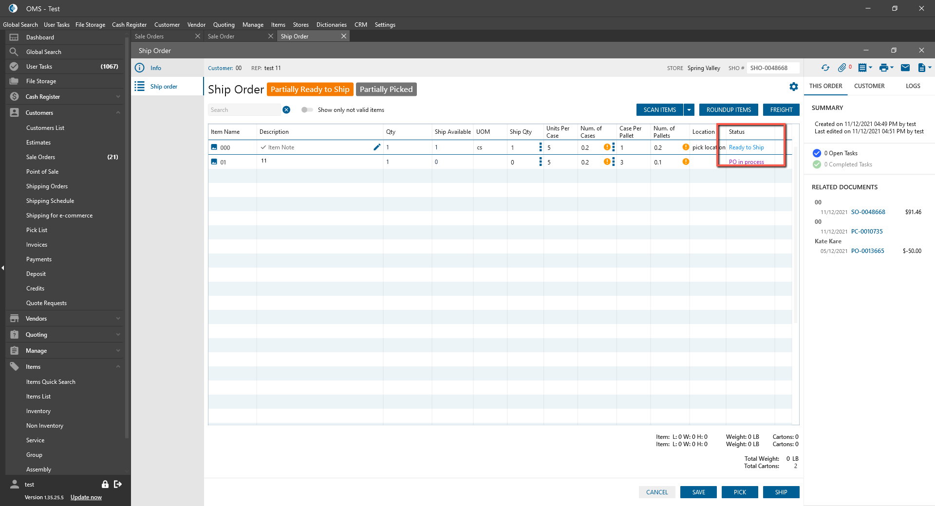 - Click on the Pick Order button -> On the Ship Ship Order pop-up click No button;