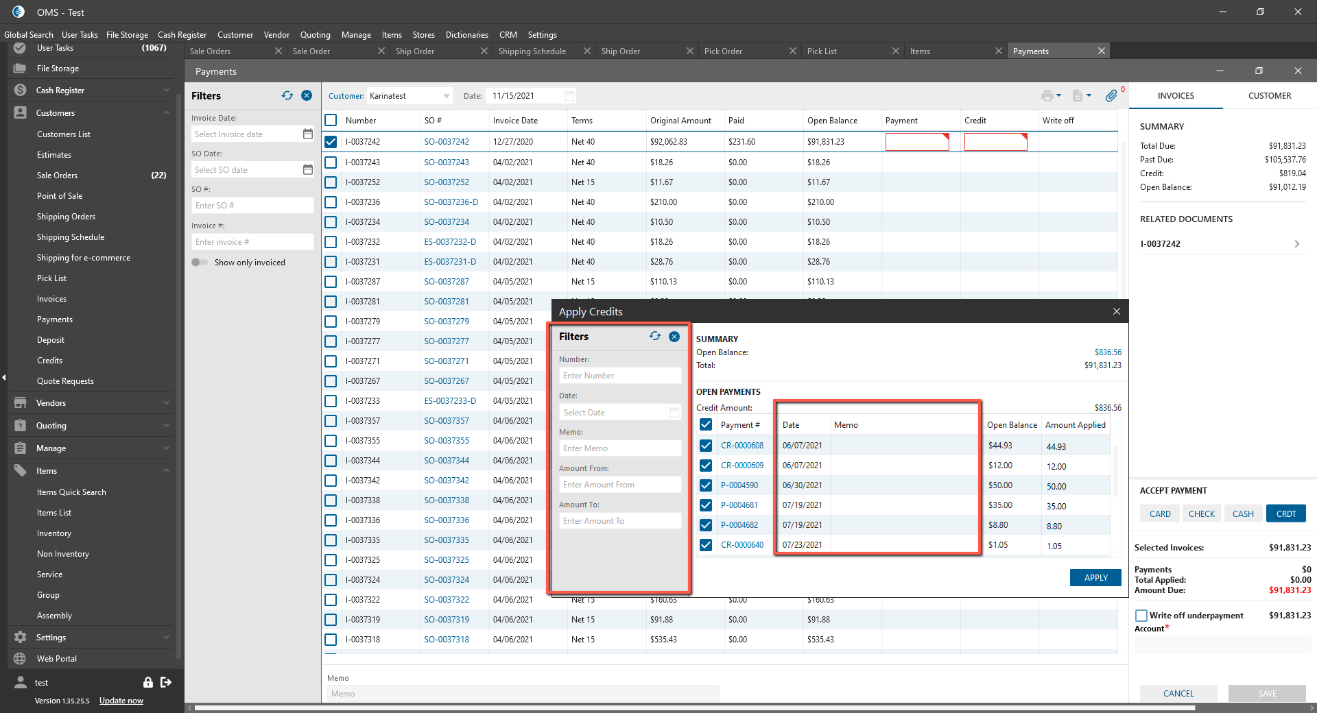- Click on the Credit Payment button -> Apply Credit pop-up is opened: