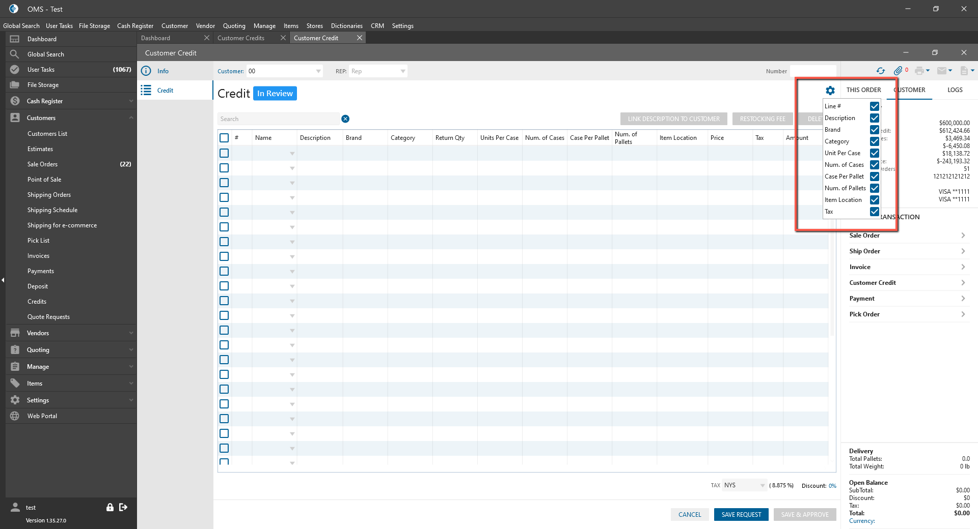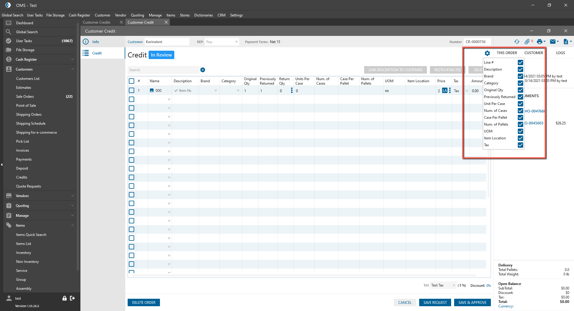 - Num. of Pallets -> if “Use Pallets” checked in the Company Settings;