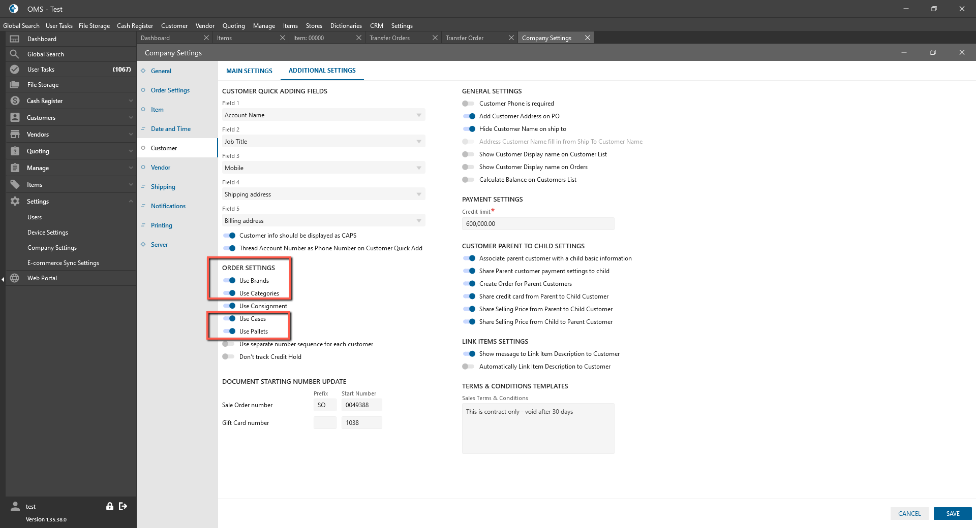 - Case Per Pallet -> if “Use Pallets” checked in the Company Settings;