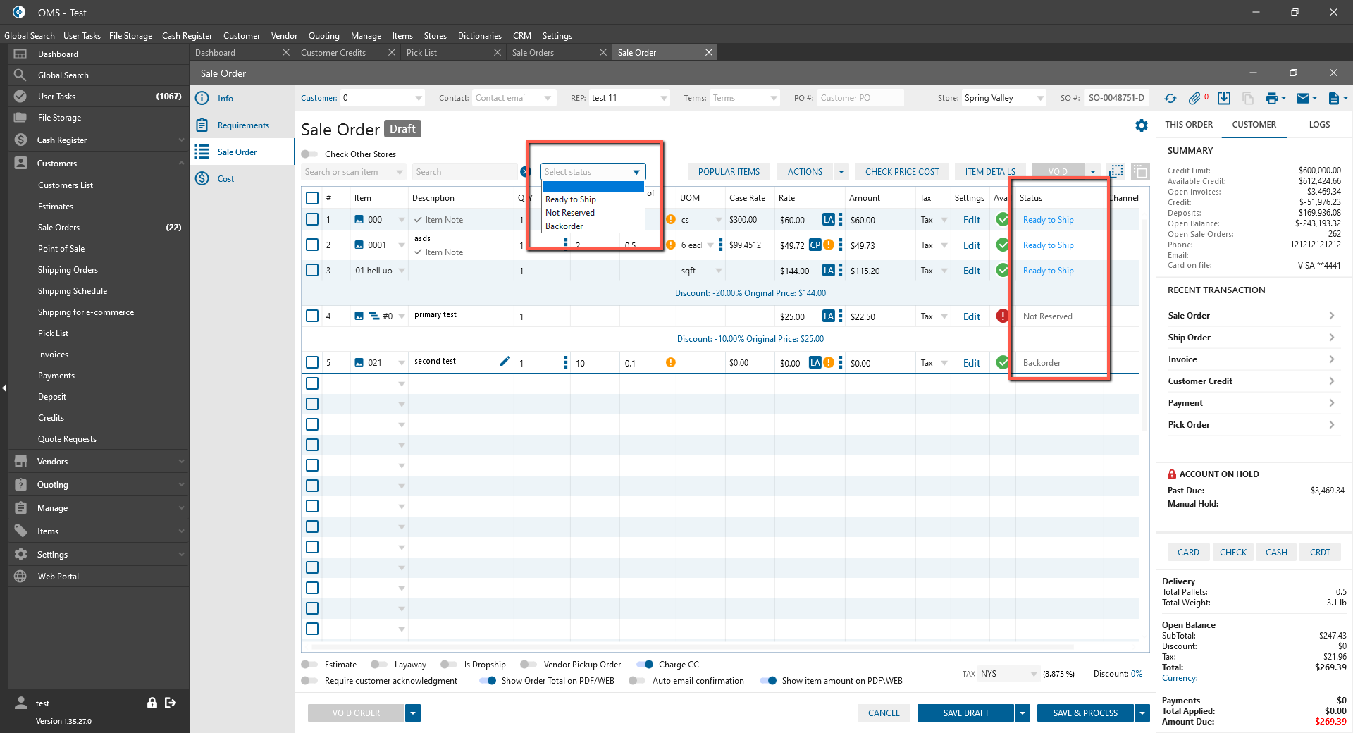 - after an item with a new status was added to the Order -> Status is automatically added to the filter list;