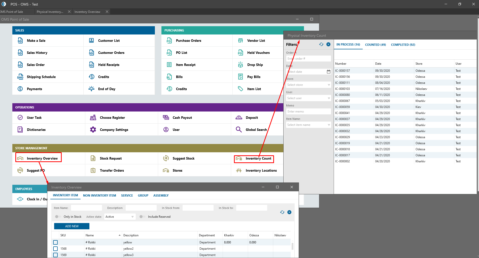User has access to theĀ Physical Inventory Count and Inventory overview from the OMS Point of Sale dashboard