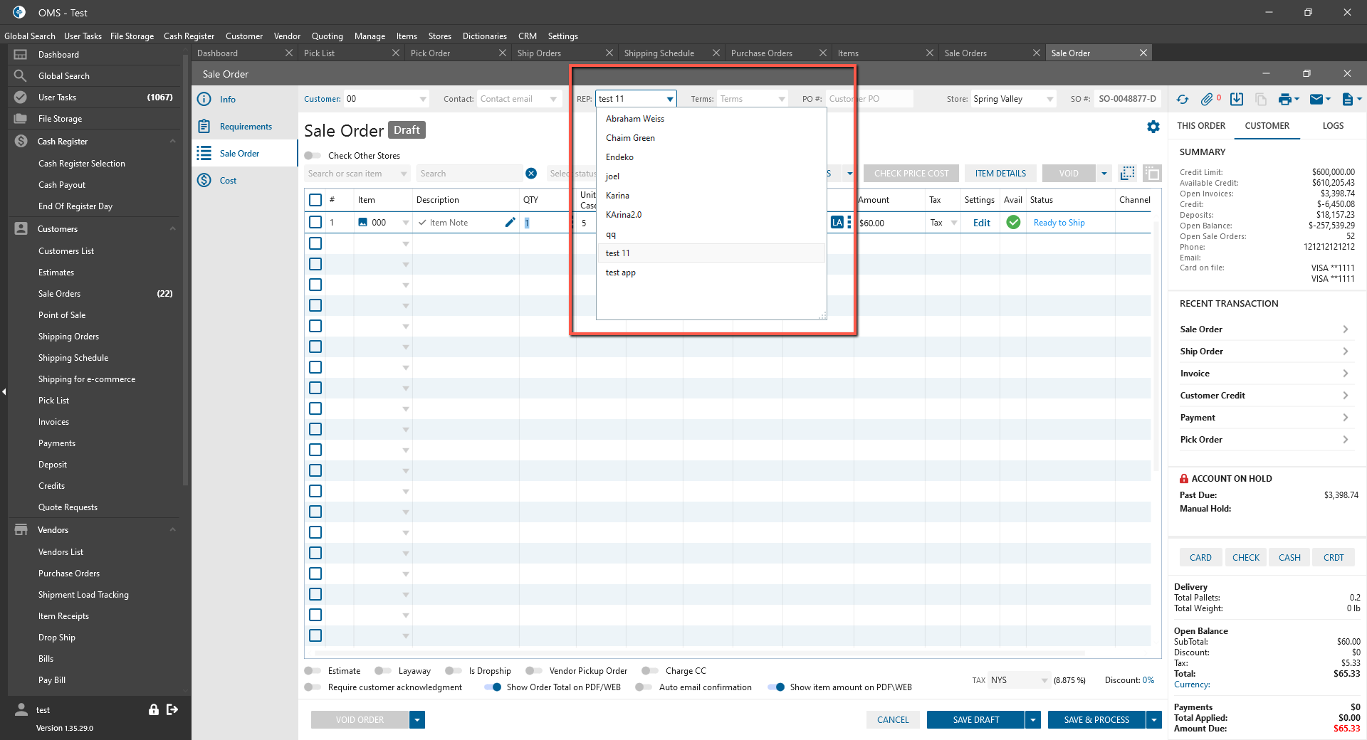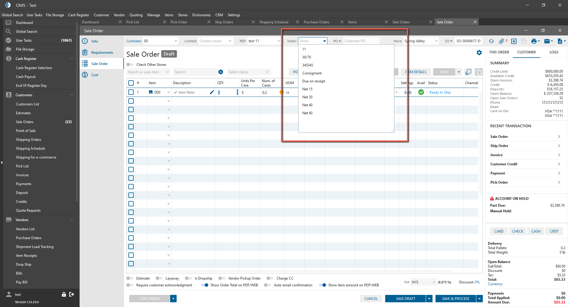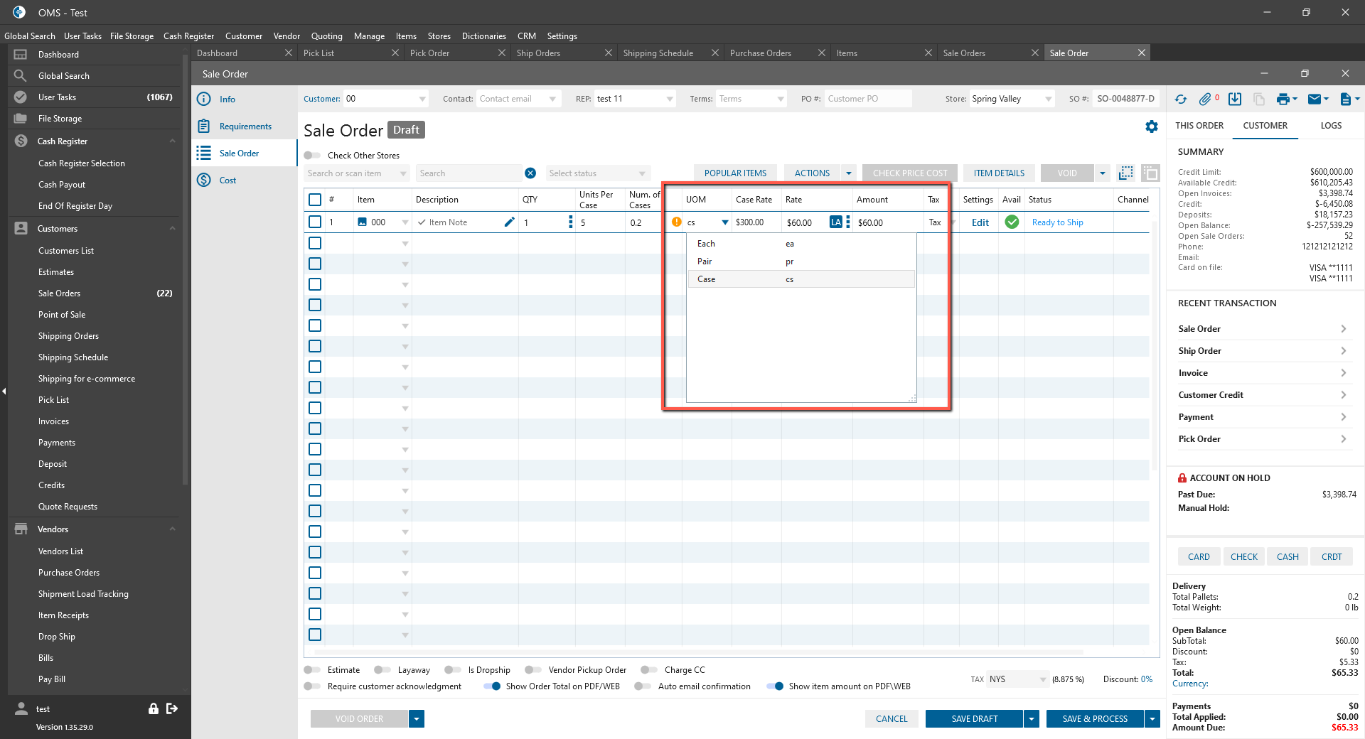 - Create new Sale Order -> Add item with UOM;