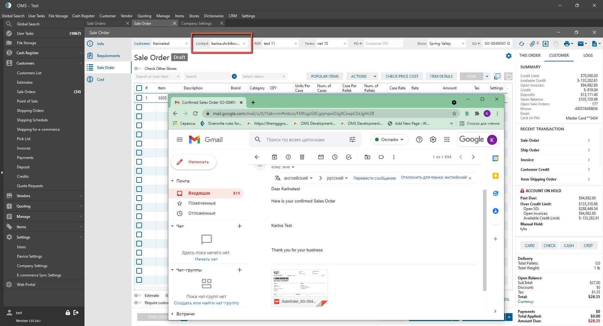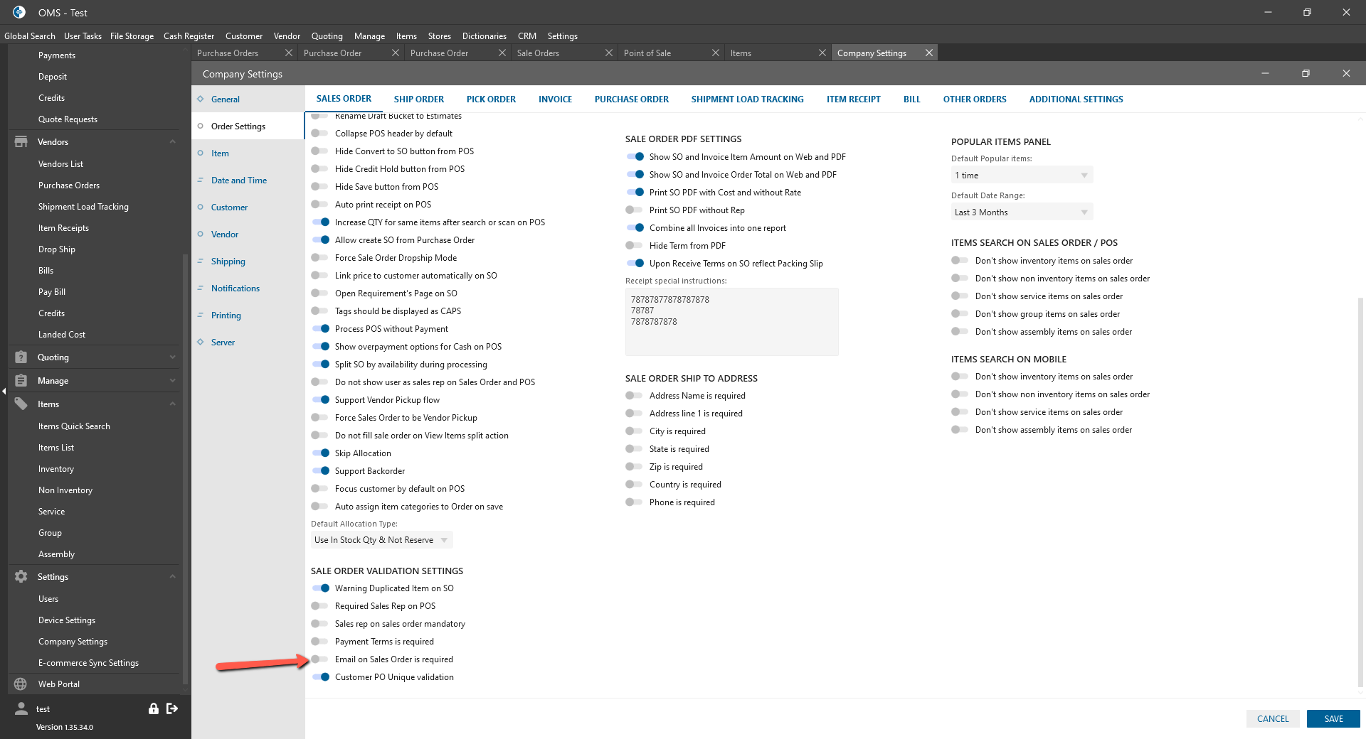 - “Email on Sales Order is required” checkbox: