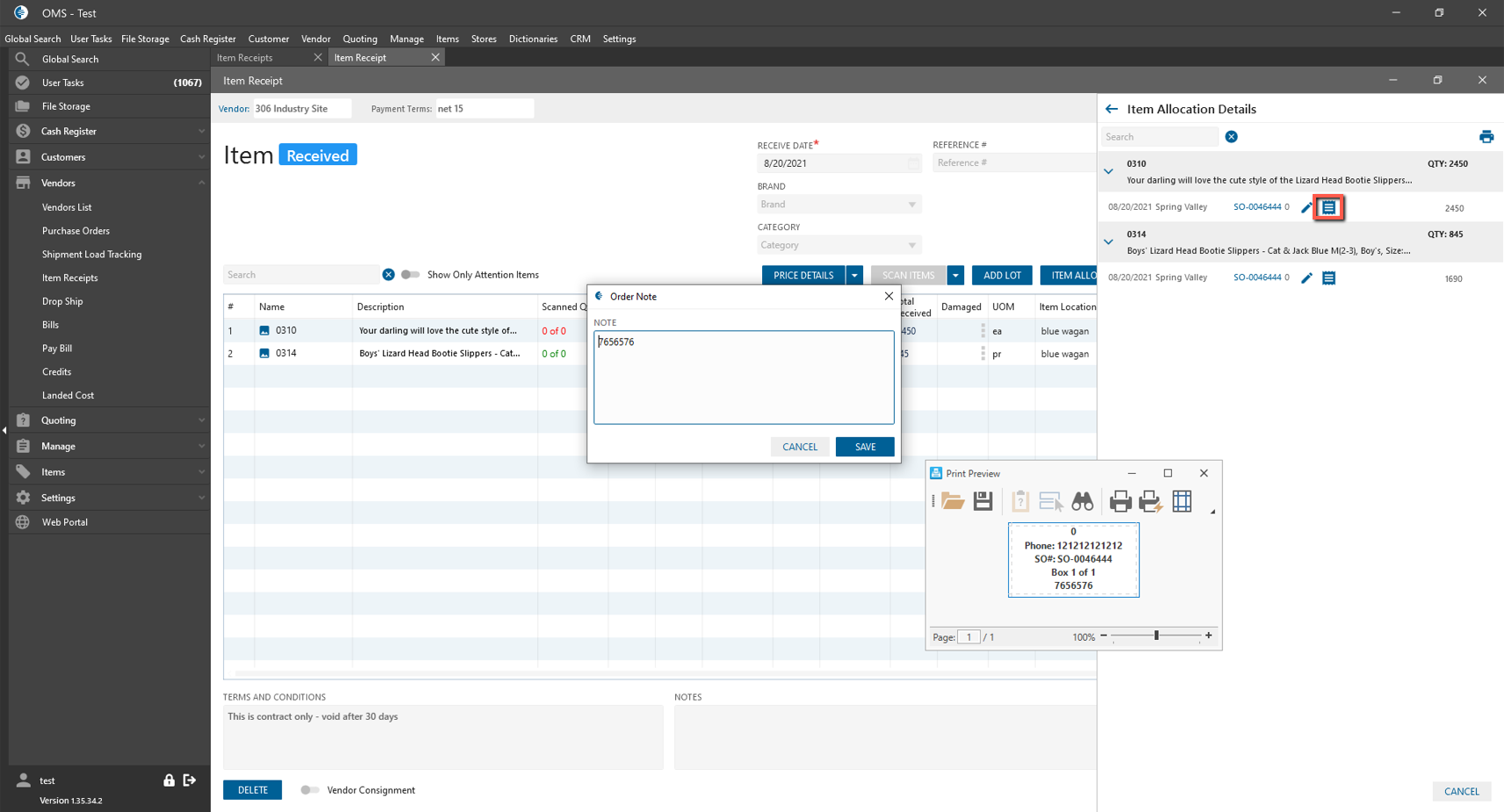 - after clicking on the button –> Sale Order Generic Label is printed with note.
