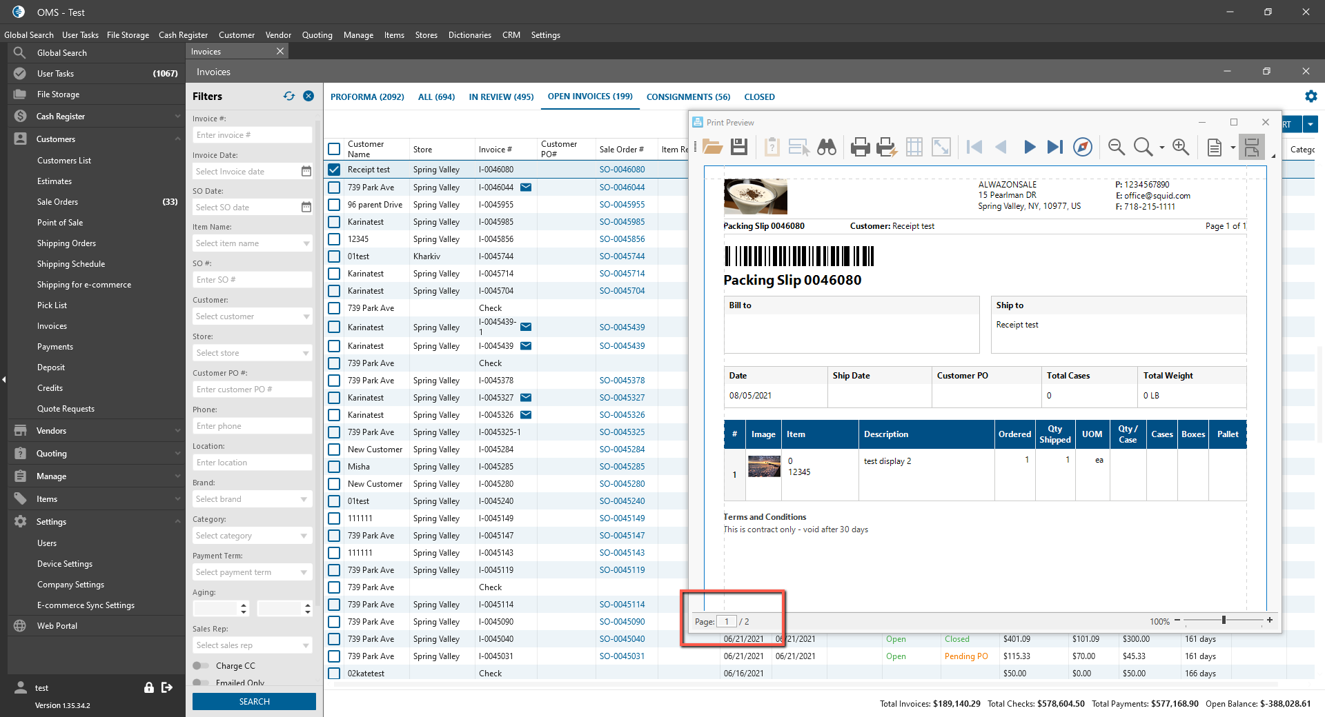 - Invoice List form -> “Print”multi-button -> Print Packing Slip;